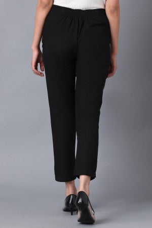 Black Floral Print kurta With Shoulder Panels And It Also Features Mandarin Collar With Half Button Placket. The kurta Is Coordinated With Black Parallel Pants Having Floral Print On Hemline.