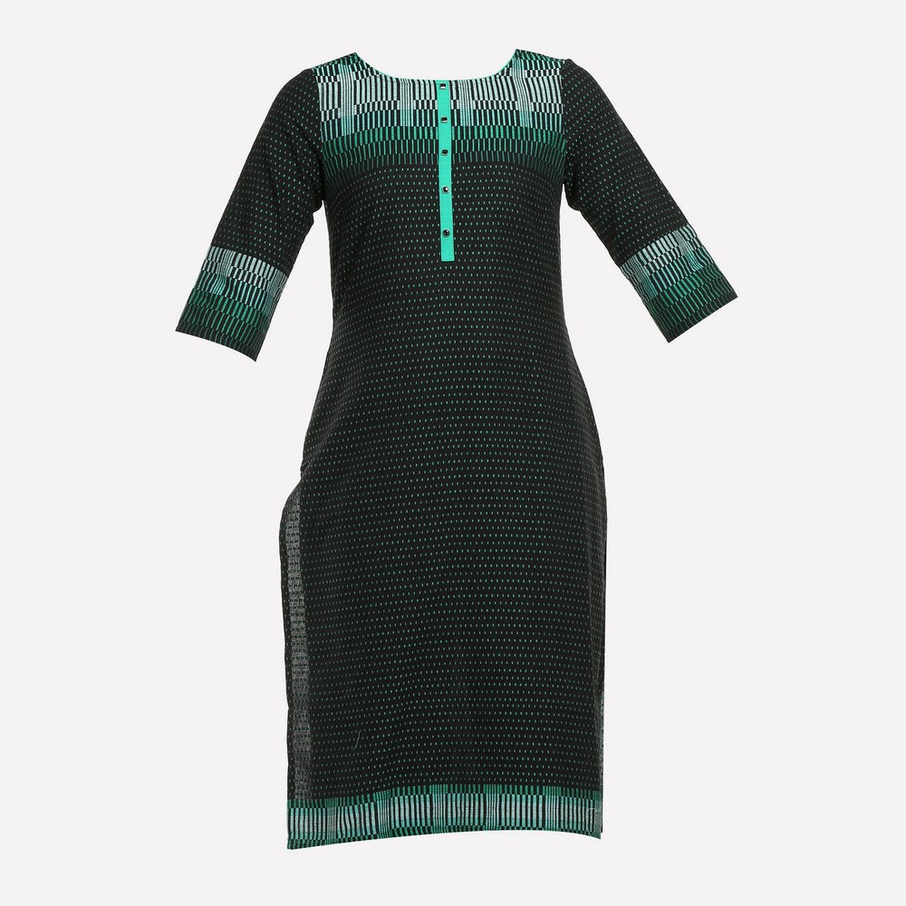 Black & Green 3/4 Sleeve Printed kurta