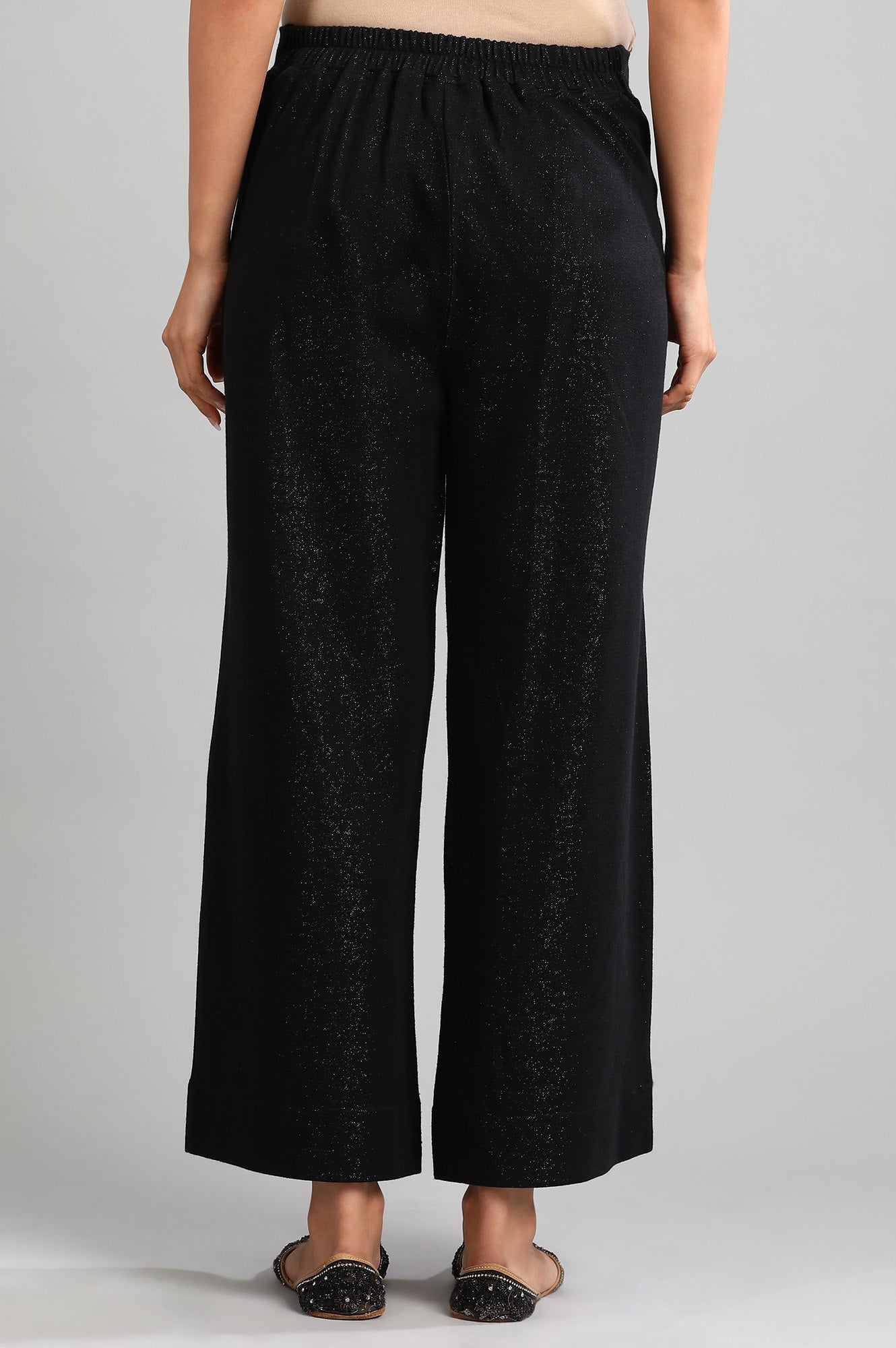 Black yarn-dyed winter palazzos with elasticated back.
