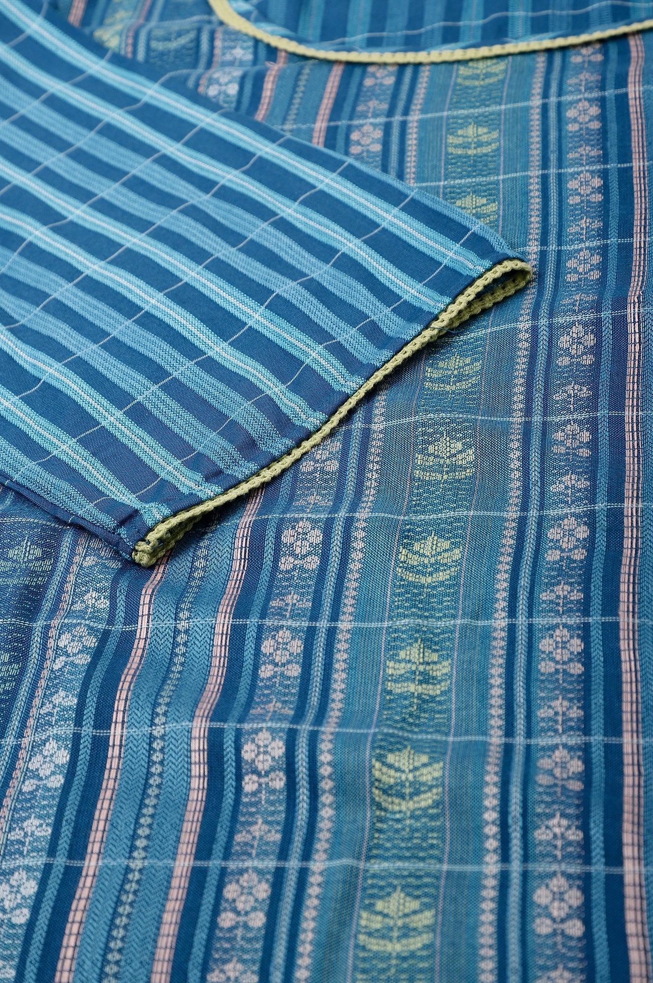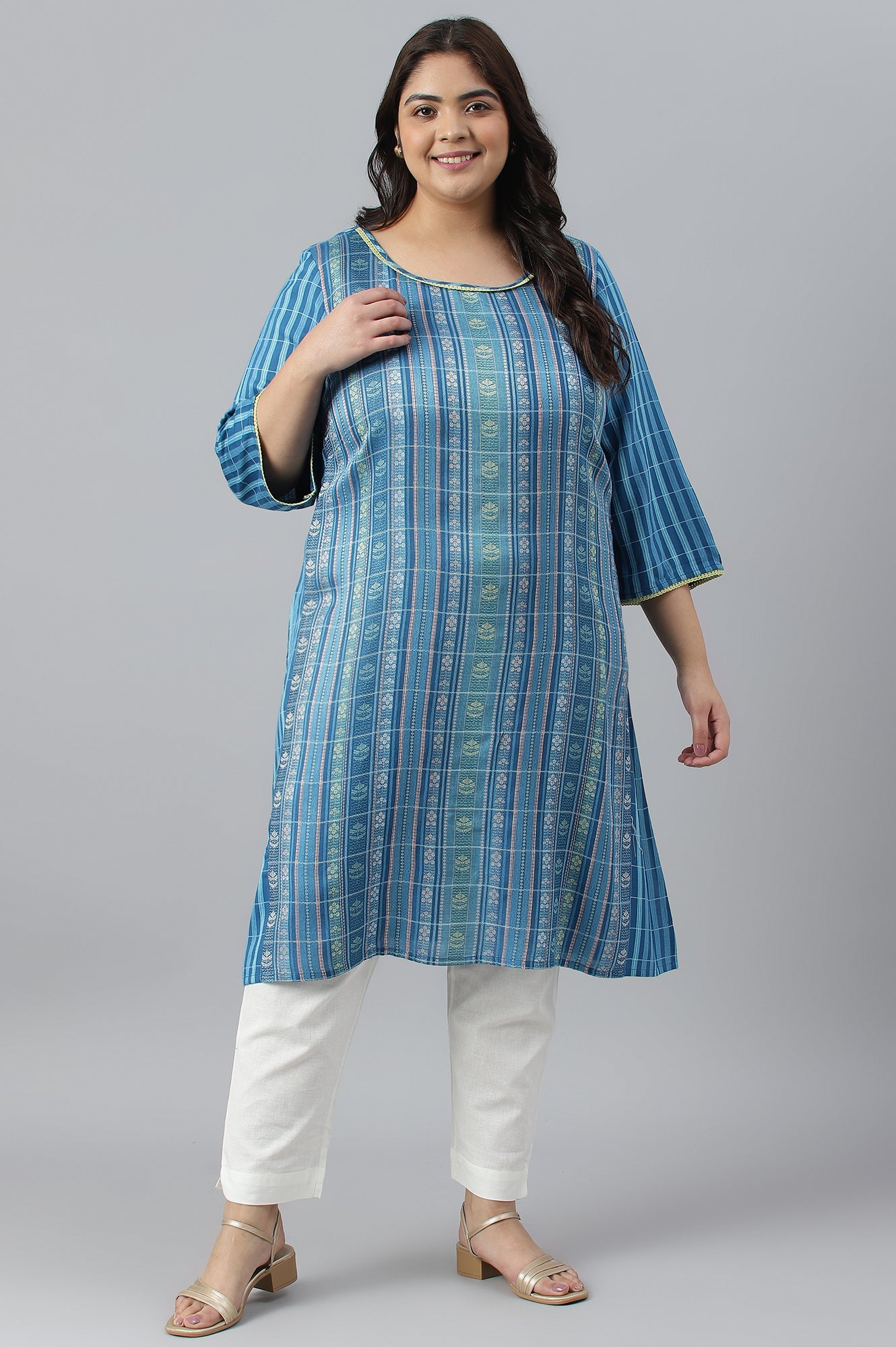 Blue Dobby Printed Ethnic Plus Size kurta
