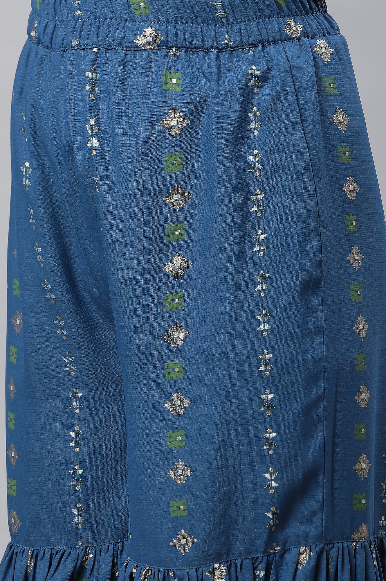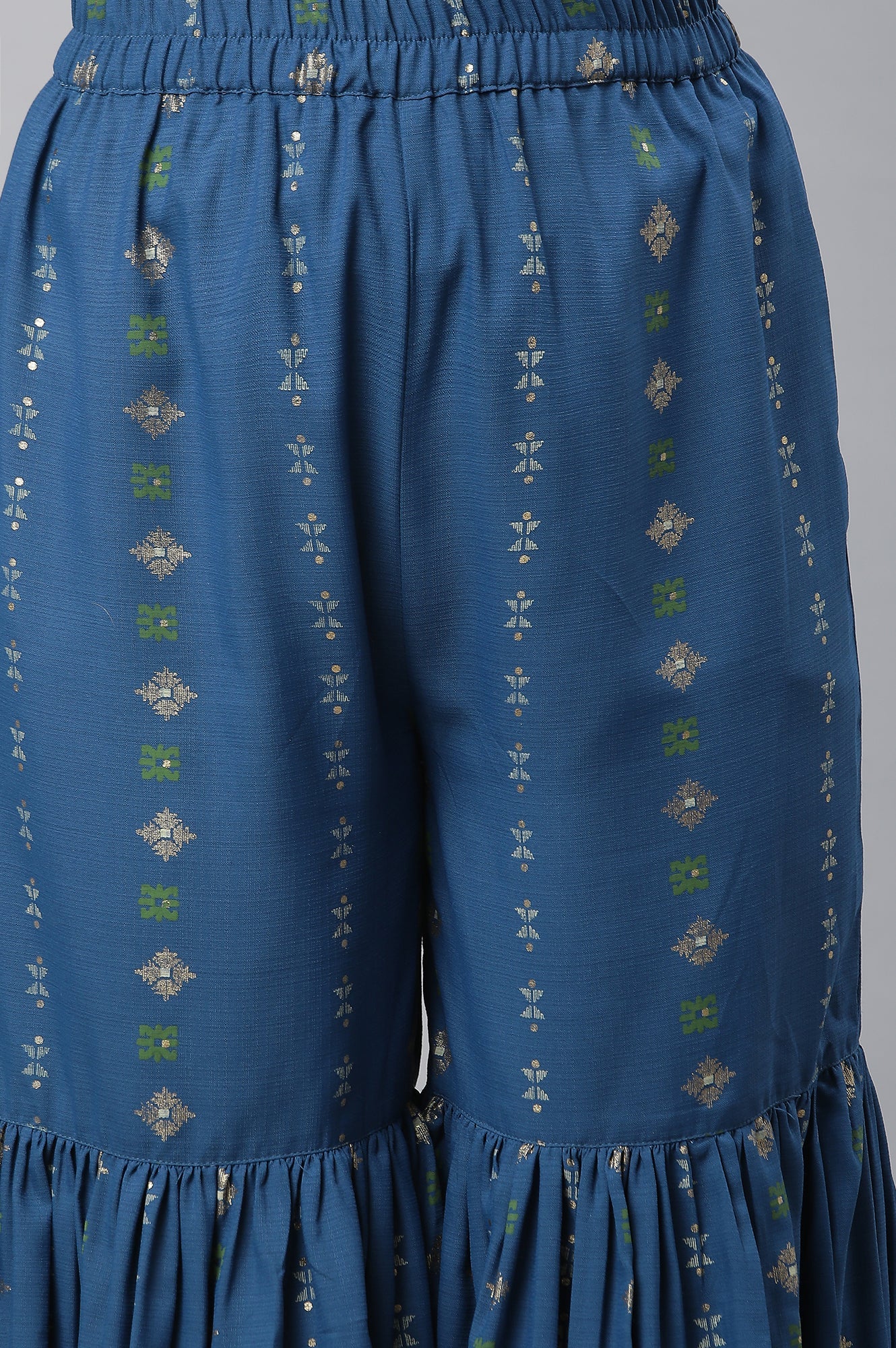 Blue Embellished Short Kurta, Sharara and Dupatta Set