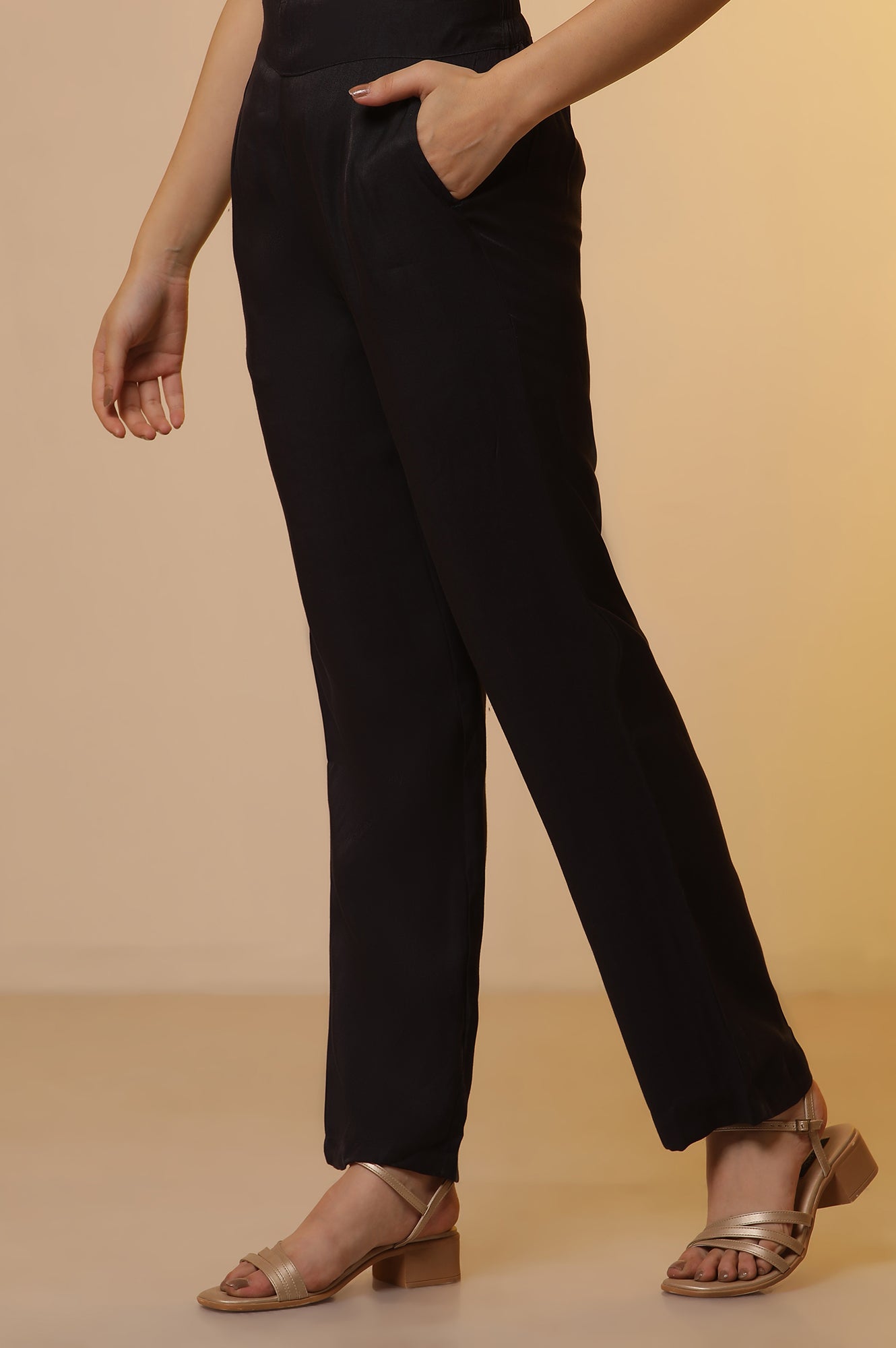 This straight cambric kurta with an ikat foil print is a stylish and remarkable piece for any festive wardrobe. The mandarin collar and placket detail add a touch of elegance to the kurta, while the lace patch around the collar, placket, and sleeves provide a delicate and feminine touch. This kurta is paired with navy blue narrow palazzo pants and beautiful printed dupatta.