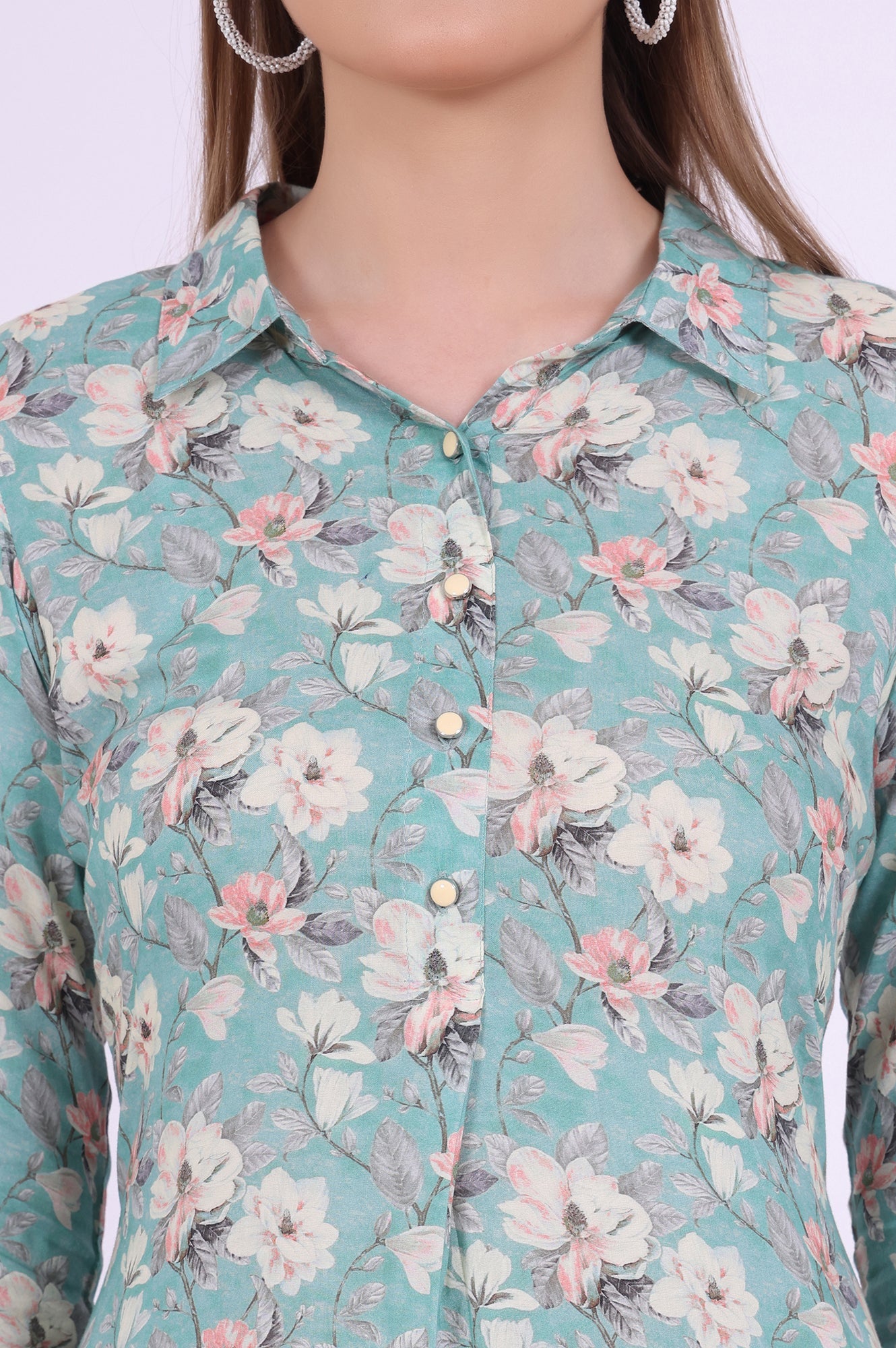 Blue Printed Straight Kurta with Palazzo & Dupatta Set