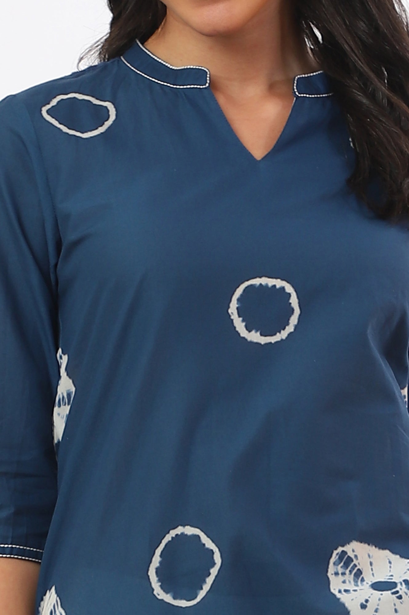 Blue Shibori Printed A-Line Pure Cotton Kurta