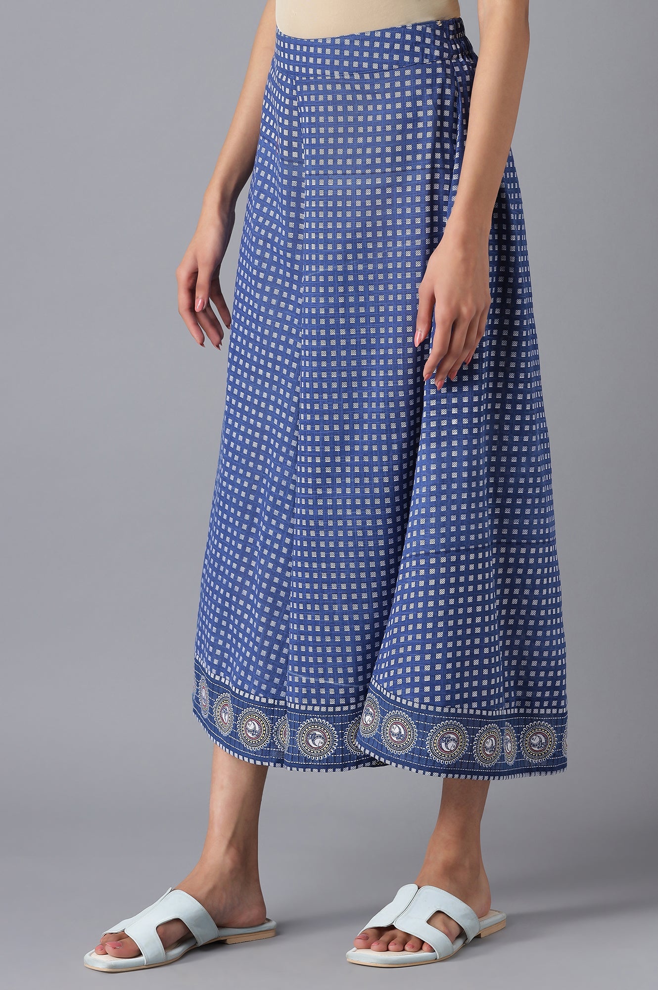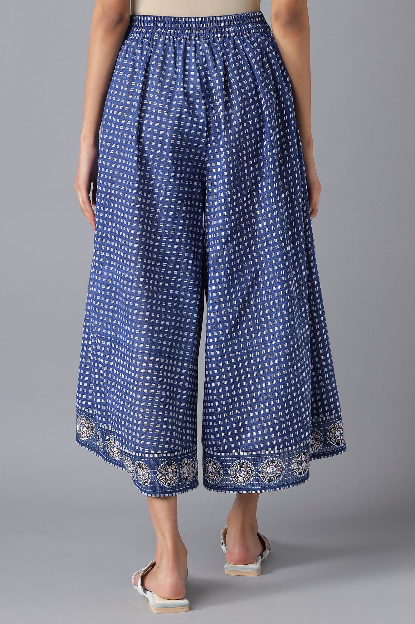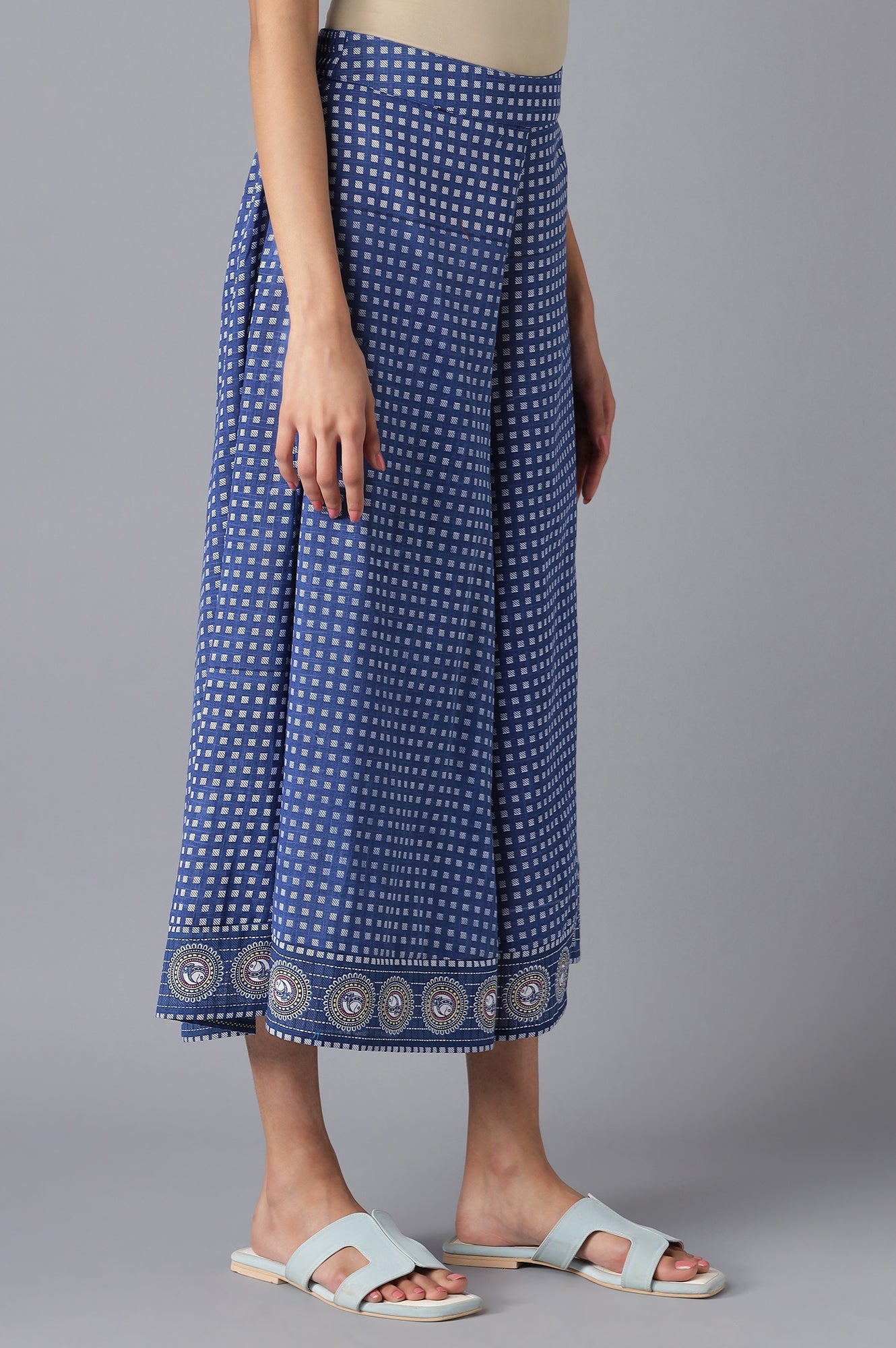 If you can't stop falling for comfy and chic bottoms then this navy culottes is a perfect pick. Tailored with rayon fabric, this pair of culotte slip-on closure and mid-rise waist.
