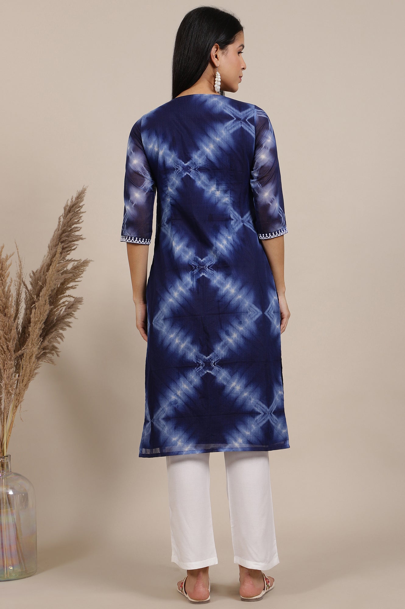Blue Tie and Dye Kota Straight Kurta with Thread Embroidery
