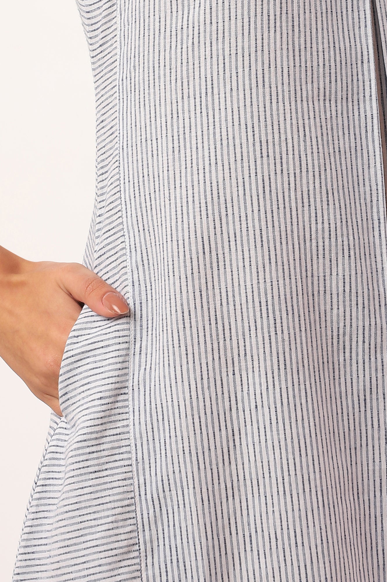 Blue Yarn Dyed A-Line Cotton Blend Kurta