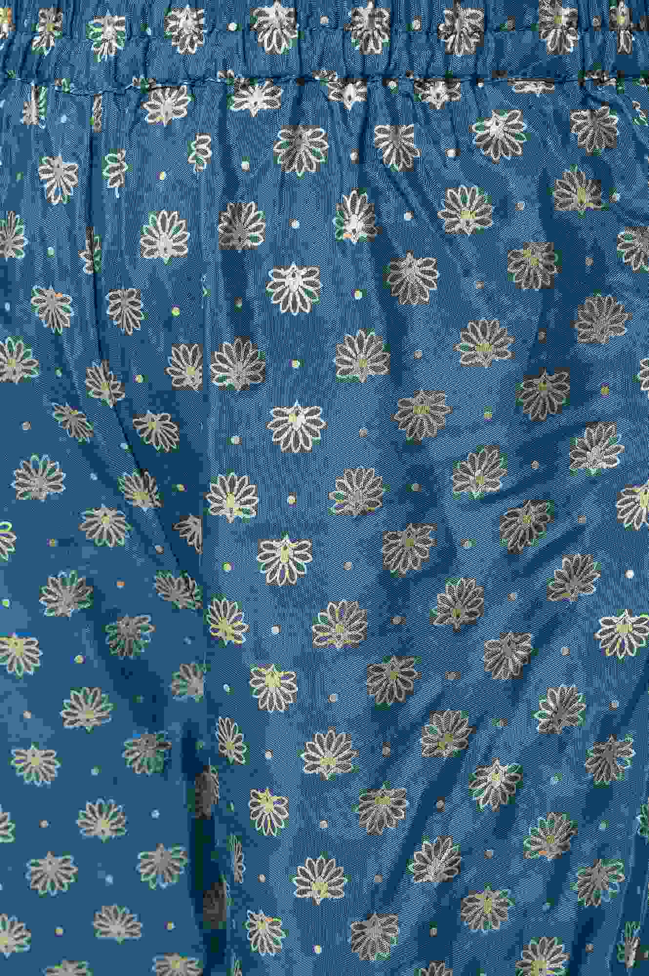 Girls LIVA Peach Floral Foil Print with Blue Straight Palazzo Set