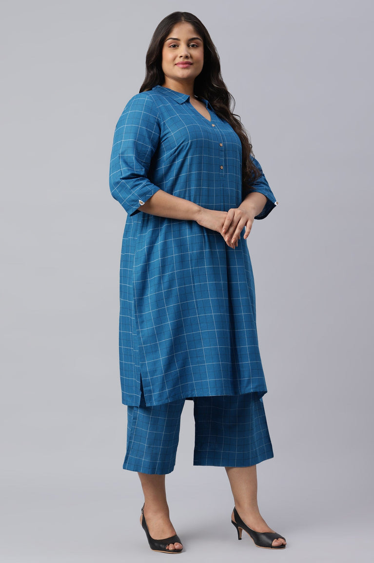 Blue Yarn Dyed Straight Pure Cotton Kurta