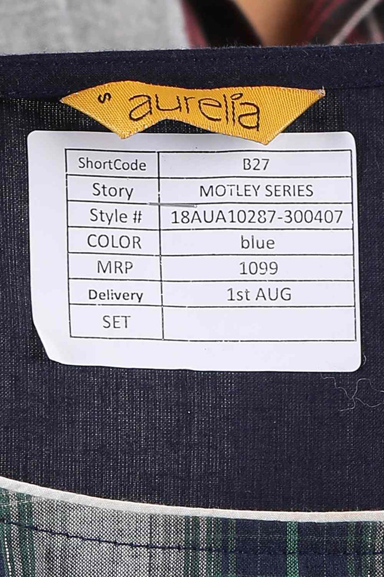 Blue shirt collar A-line kurta with gathers, placket detail and checkered pattern. This is exclusively from Disha's must-have closet.