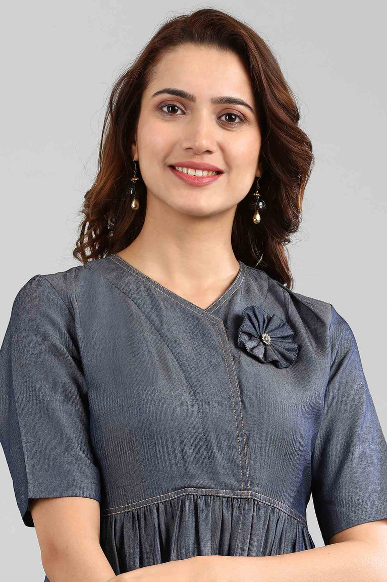 Discover the perfect blend of comfort and style with this women's Aurelia blue kurta. Crafted from pure cotton, this fusion-inspired piece is ideal for casual occasions. The three-quarter sleeves and round neckline offer a classic look, while the below-knee length and straight cut create an elegant silhouette. The woven construction technique ensures durability, and the zari detailing adds a touch of sophistication. The slit detail provides ease of movement, making it perfect for everyday wear. This kurta combines traditional elements with modern design, making it a versatile addition to your wardrobe. The 100% cotton composition guarantees breathability and comfort throughout the day.