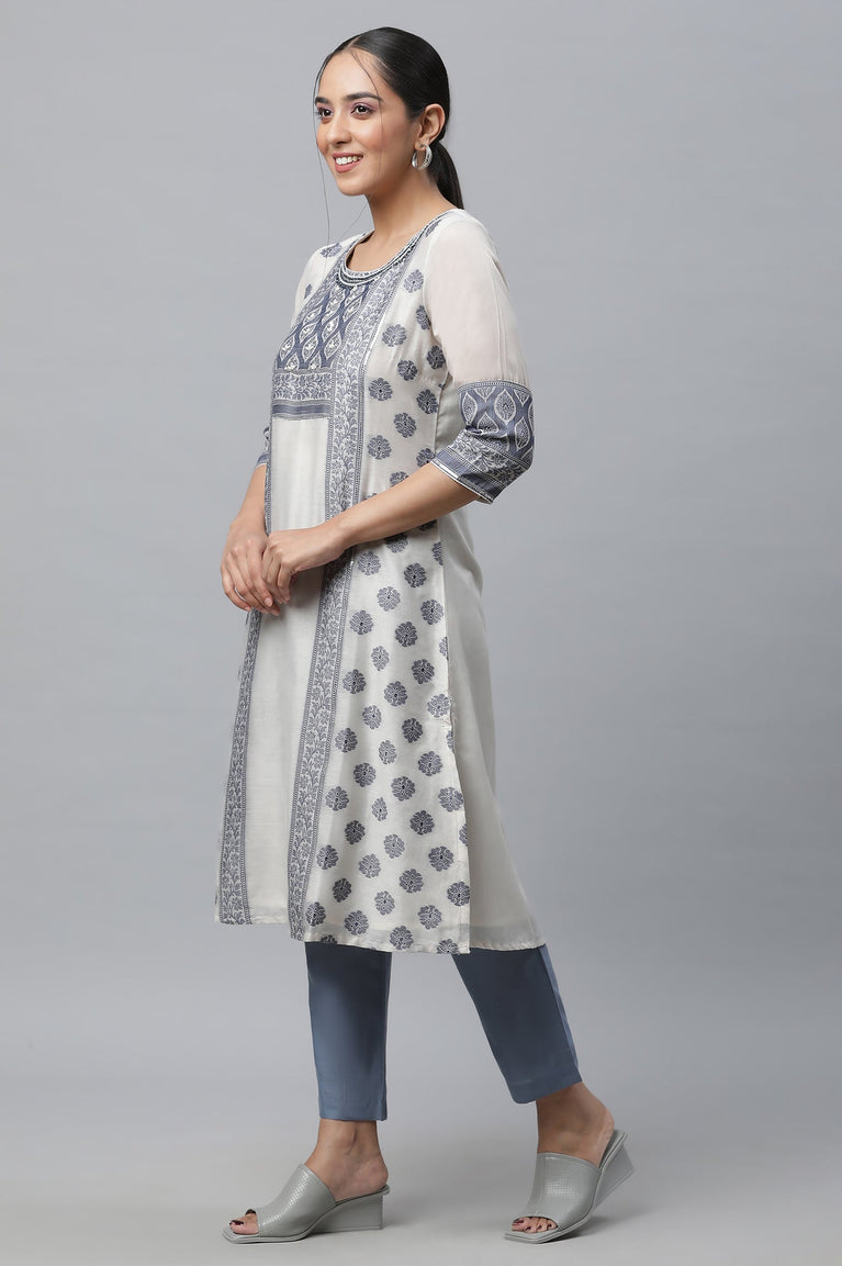 Curated In Breathable Textured Twill, This kurta Is Tailored With Ease For Daily Activities. It Features A Smart Shirt Collar With A Horizontal- Striped Short Placket, Sleeve Cuff And Back Yoke. Throw It On With Our All New White Pin Tuck Trouser In Twill Fabric.