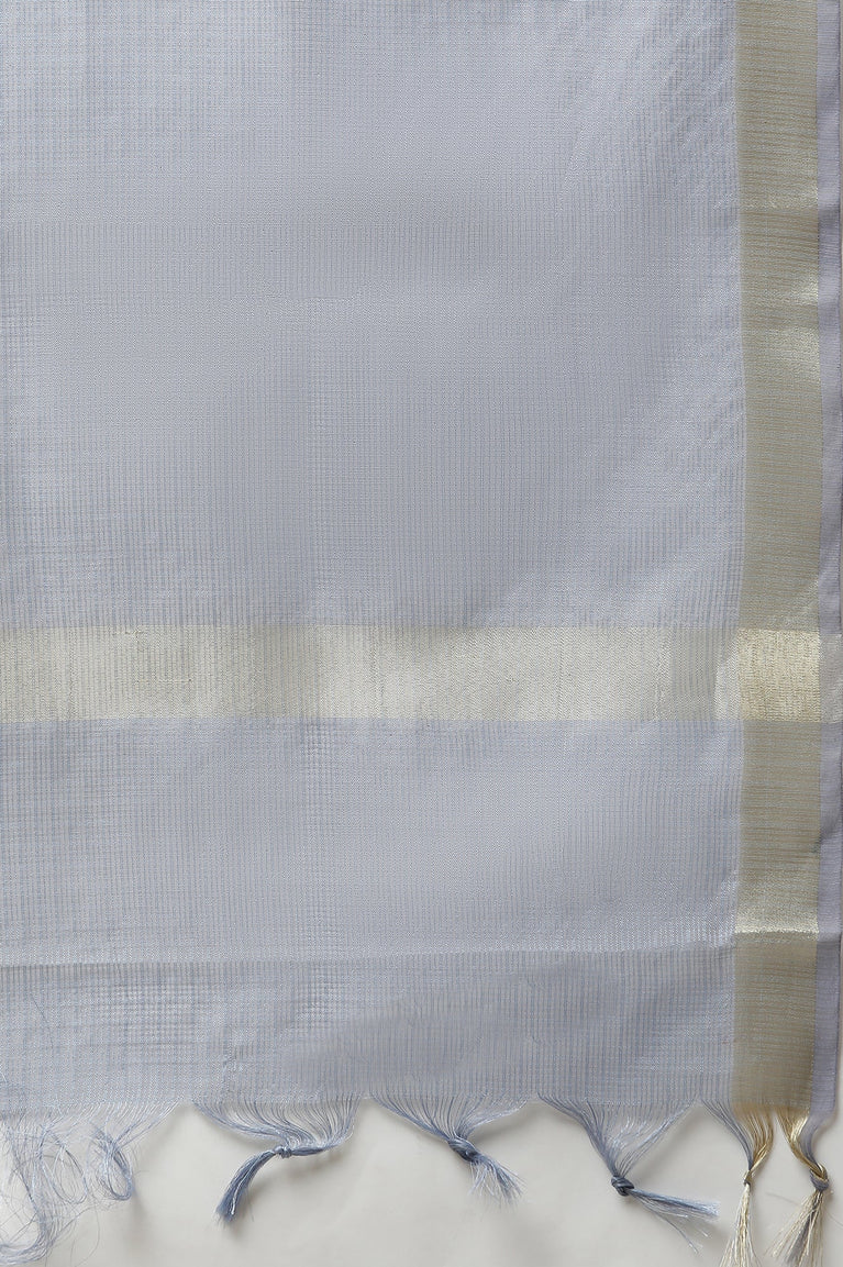 Blue Yarn-Dyed Kurta, Trousers And Dupatta Set