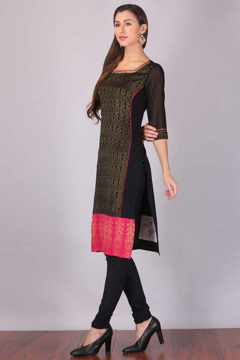 Pair it with our black straight pants and a matching printed organza dupatta.