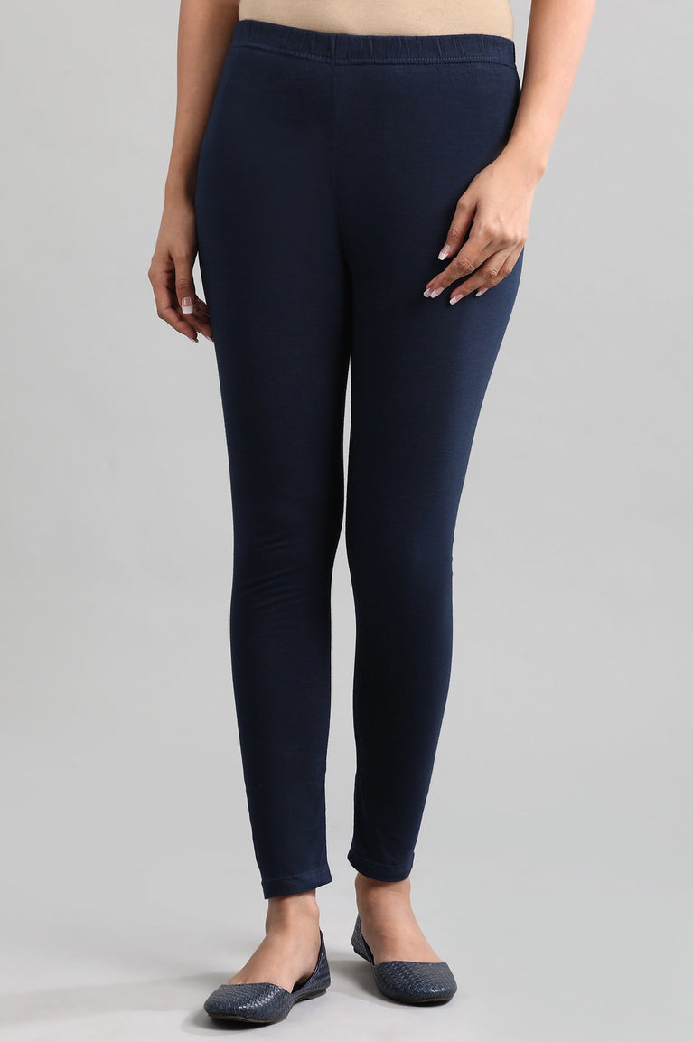 Blue straight kurta in band collar with placket, it is embellished with geometric print. The kurta is paired wth white solid tights.
