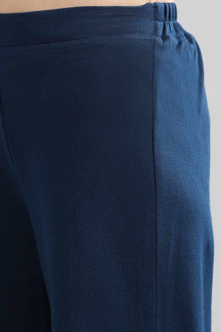 Blue Yarn-Dyed kurta White Flared Palazzo and Dupatta Set
