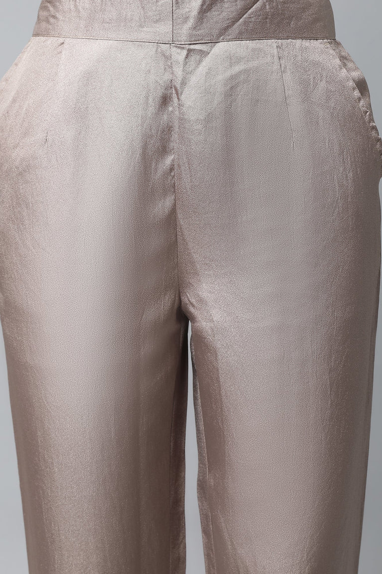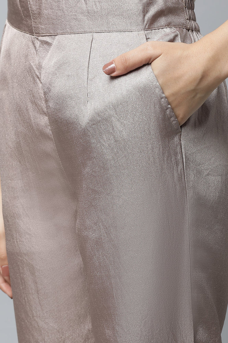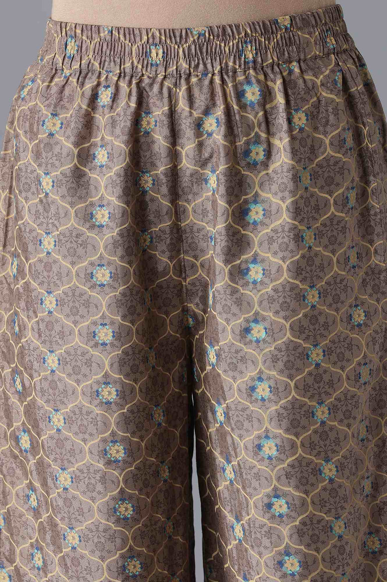 Festivities delve for contemporary attires with delightful hues, striking motifs and intricate detailing. This kurta set features a brown all-over mughal print kurta having zari embroidered yoke with round neckline and three-quarter sleeves. Well-matched with printed palazzos.