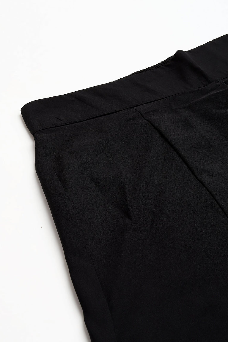 Simple, comfortable yet modish this solid palazzo has partially elasticated waistband and mid-rise.