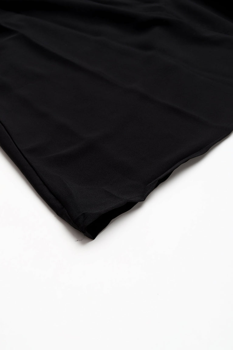 A perfect pick for your casual and workwear wardrobe. This black textured straight silhouette kurta has square neck and three-quarter sleeves.