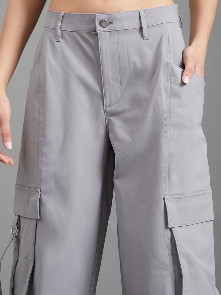 Elevate your casual look with these Ebony Grey Cargo Pants made entirely from durable, easy-care 100% Polyester fabric. These full-length, baggy fit pants feature a secure zipper and button closure and non-elastic waistband for a structured, trend-right fit. With 4 sizable pockets, they're perfect for on-the-go Gen Z fashion lovers who value both practicality and style in everyday wear.