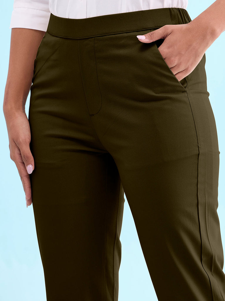 Amp up your style game for ethnic or western with our Solid Dark Brown Kurti Pants. Made from cotton & elastane, it is a mid-rise elasticised waistband pant with slant pocket & a tapered fit