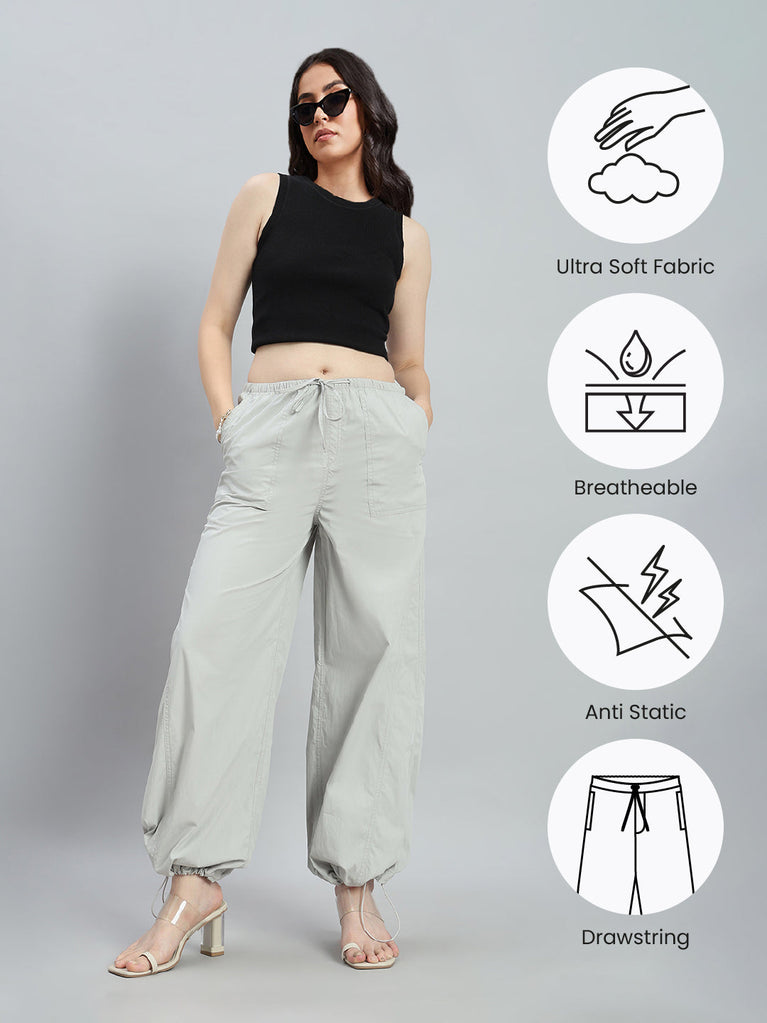 Stay cool and confident with these Ebony Grey Parachute Pants, crafted from a soft and sturdy 73% Cotton and 25% Nylon blend. Designed for a relaxed, baggy fit with full length and mid-rise waist with 4 functional pockets, they feature a convenient slip-on closure and woven construction for breathability. Ideal for free spirits and street-style aficionados looking for lightweight comfort and the latest trend in loose silhouettes.