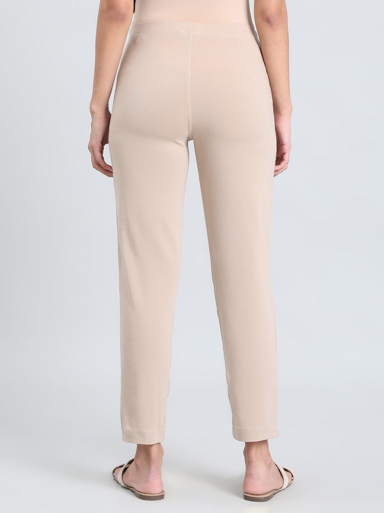 Amp up your style game for ethnic or western with our Solid Dark Beige Kurti Pants. Made from cotton & elastane, it is a mid-rise elasticised waistband pant with slant pocket & a tapered fit