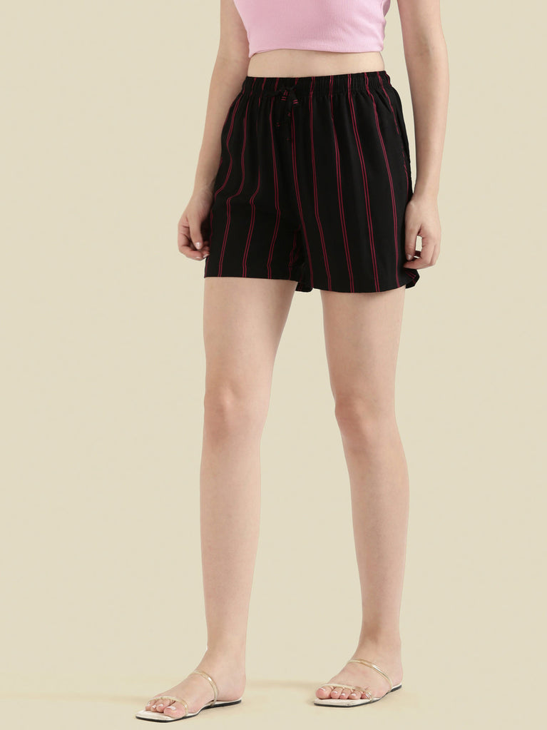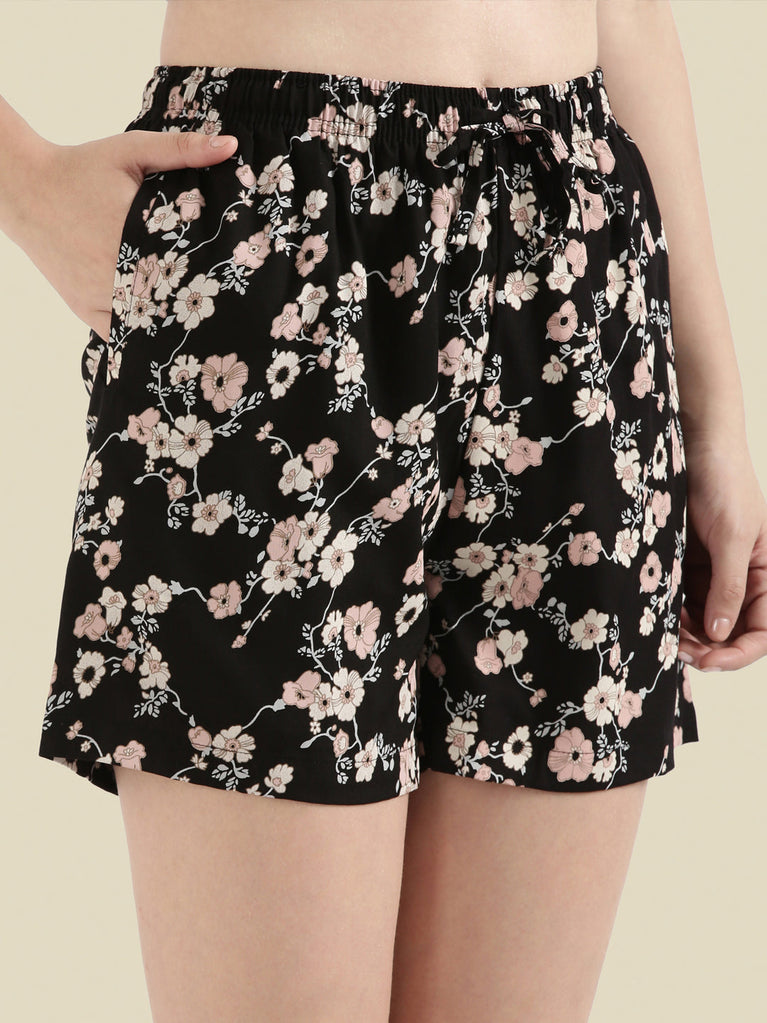 Look chic while lounging in our Black Printed Viscose Lounge Shorts. Made from viscose, it has a elasticised waistband with drawstring closure, slant pockets & is extremely light weight.