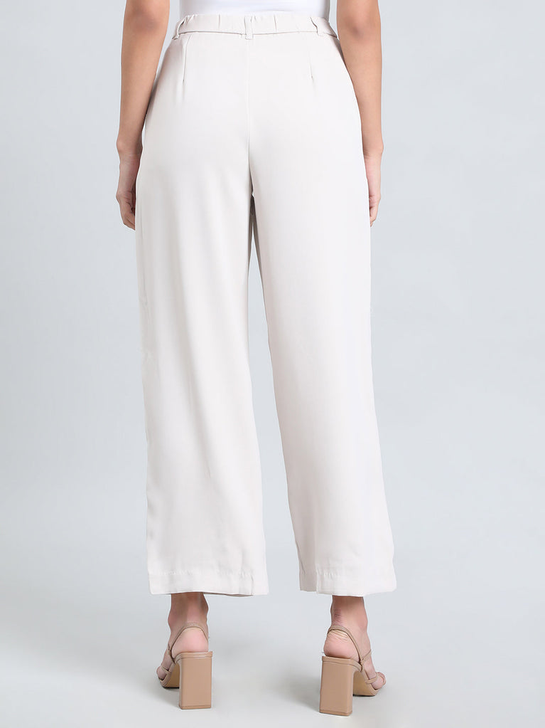 Be it a kurti or a top, these Cream Crepe Wide Pant comes with an elasticised waistband it fits the bill for every look. Made from Polyester & Spandex, it has side pocket & relaxed fit with front zipper, hook & eye on closure.