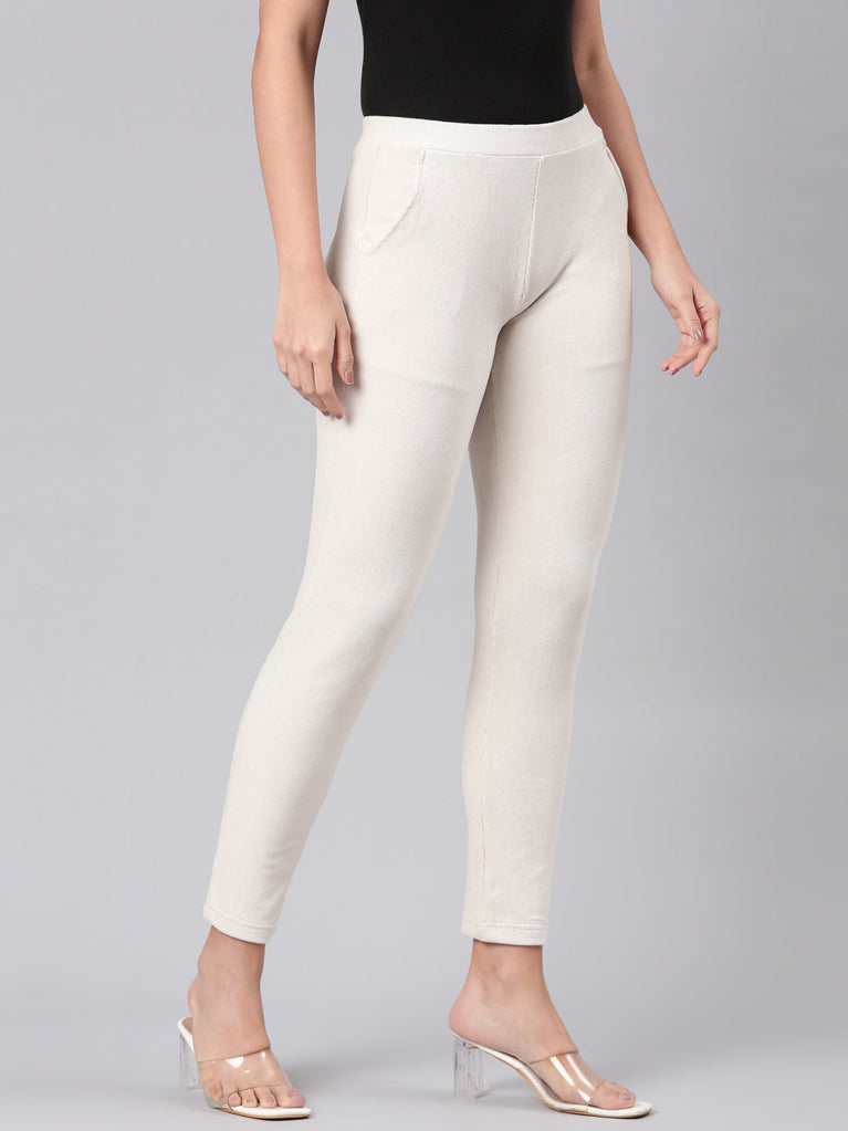 Complete any look, be it traditional or western with these Solid Dark Beige Leggings. Made from cotton & elastane, it has a elasticised waistband & has a slim fit
