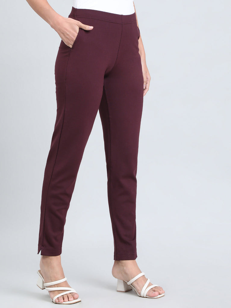 Complete any look, be it traditional or western with these Solid Dark Fuchsia Leggings. Made from cotton & elastane, it has a elasticised waistband & has a slim fit