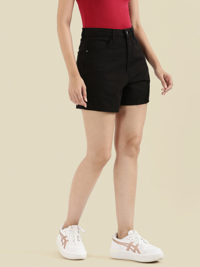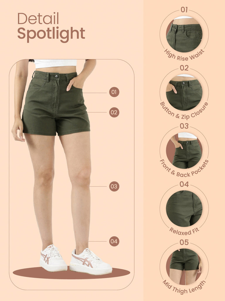 Stay stylish in our twill shorts, crafted from a soft cotton-tencel blend. featuring a relaxed fit, solid pattern, high-rise waist, mid-thigh length, front zipper closure, and 5 functional pockets. perfect for casual outings, travel, or everyday comfort with a trendy edge