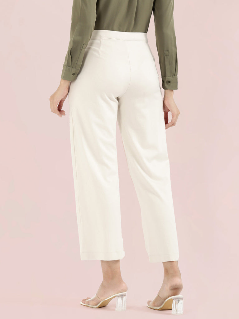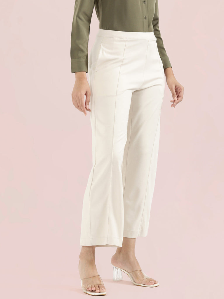Be it a kurti or a top, these Silver Grey Ponte Pants, with an elasticised waistband it fits the bill for every look. A pair of mid-rise Rayon, Nylon & Spandex wide ponte pants with an elasticised waistband, & a relaxed comfy fit