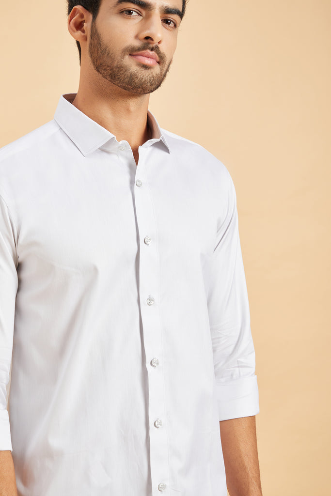 Description: This elegant white cotton satin shirt features a stunning multicolor abstract embroidery design that is sure to turn heads. The intricate embroidery adds a pop of color and visual interest to the shirt, making it a perfect statement piece for any outfit. Made from high-quality cotton satin, this shirt is both comfortable and durable, perfect for everyday wear or special occasions. The clean, crisp white color allows the embroidery to truly shine, making this shirt a must-have for any fashion-forward wardrobe.