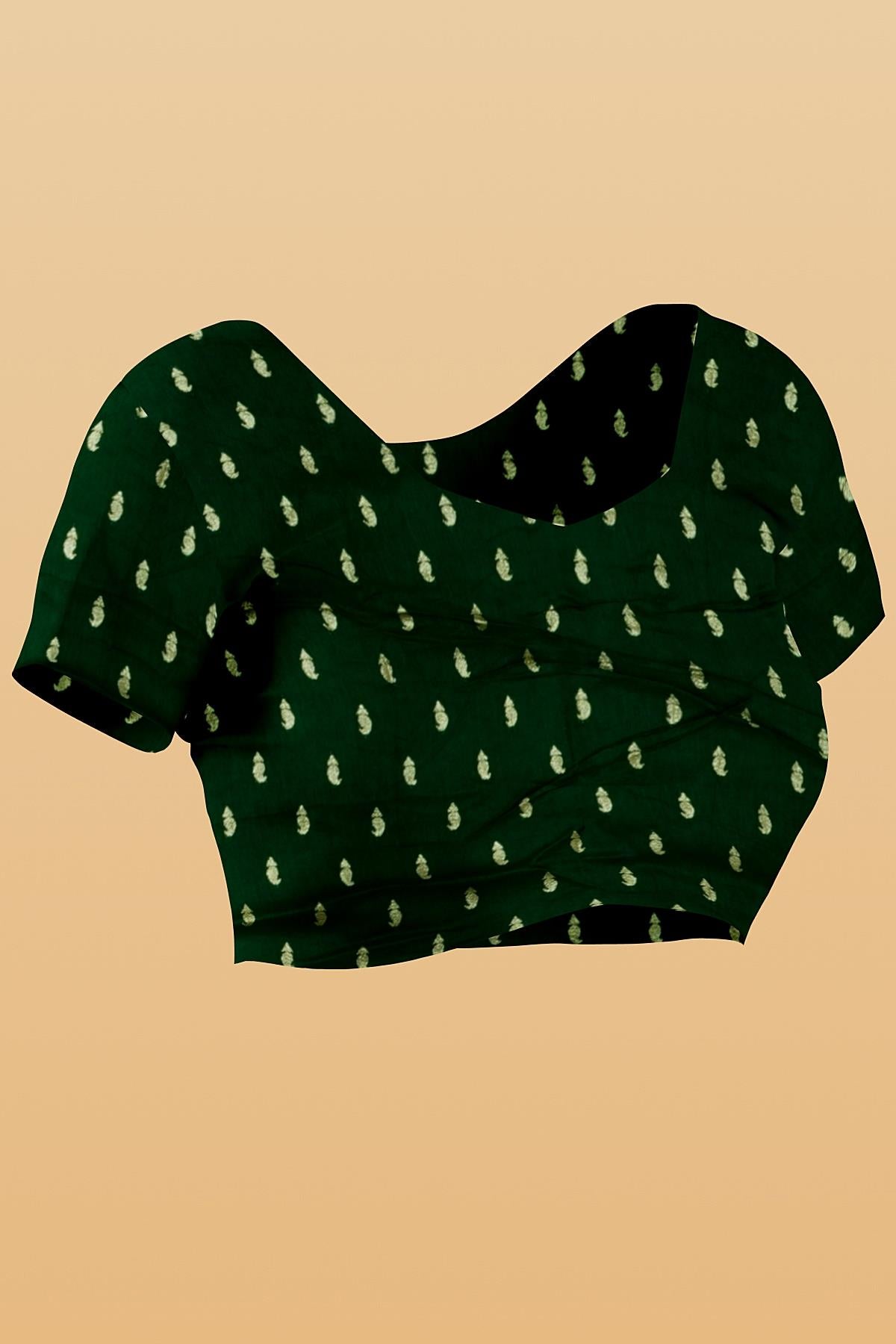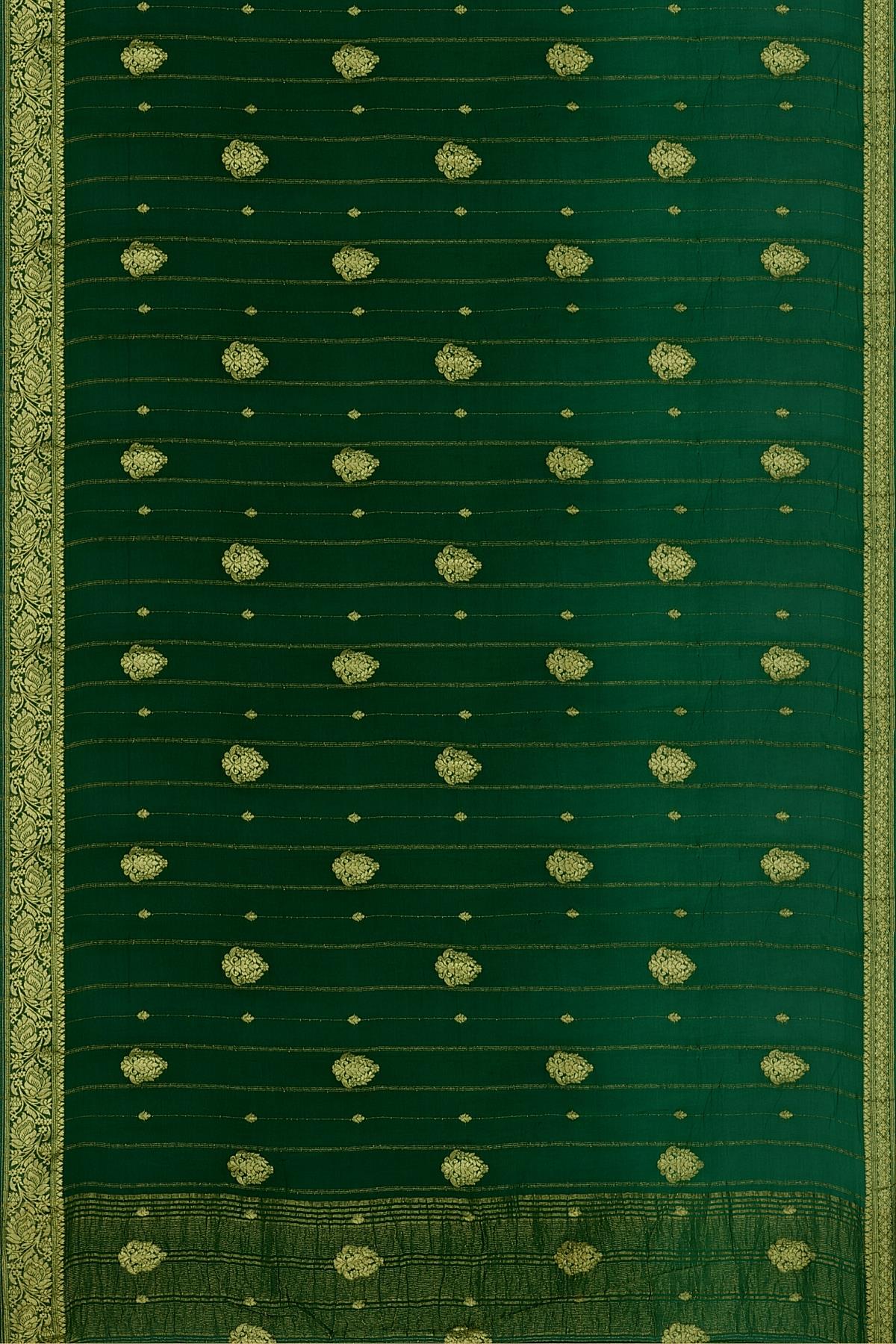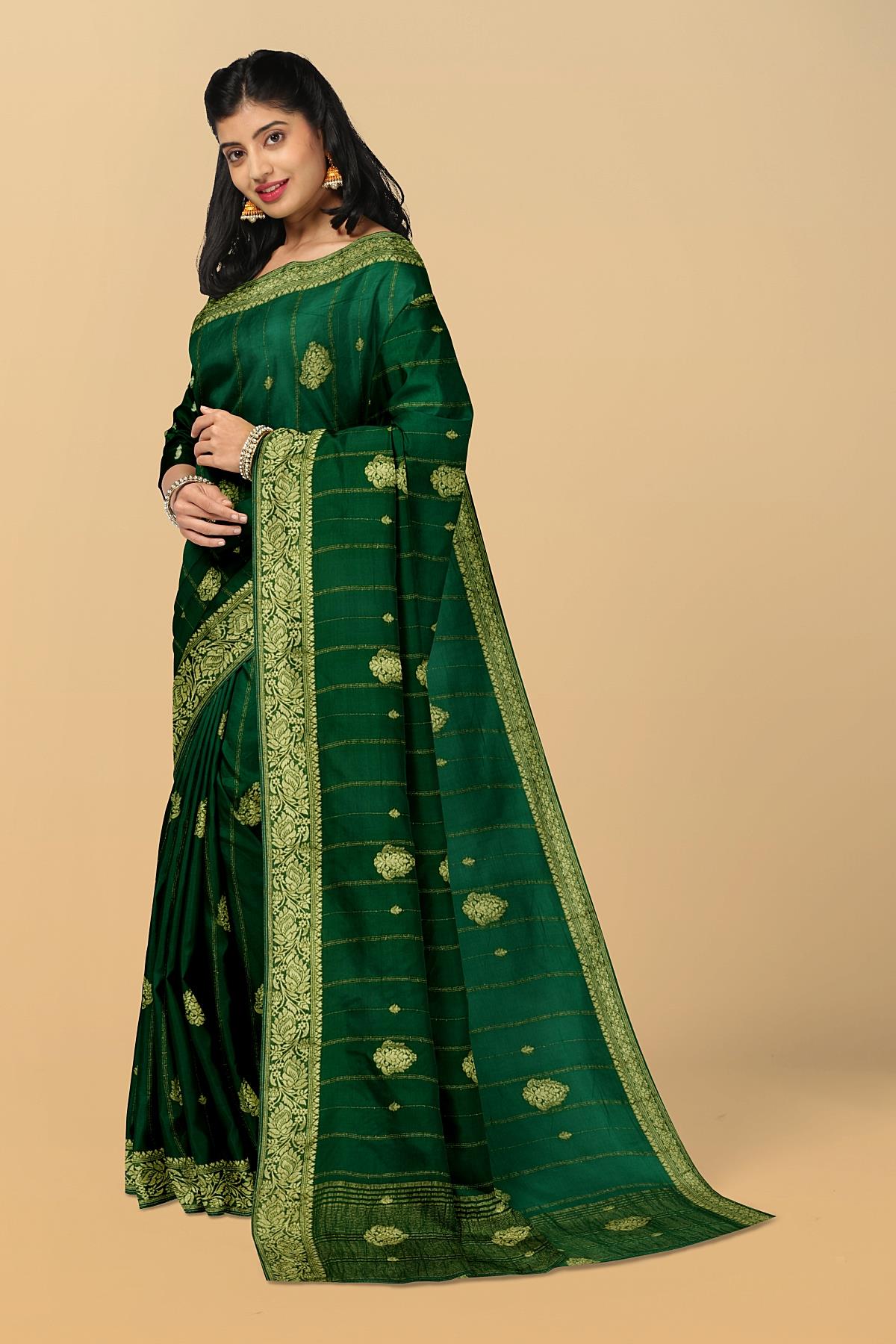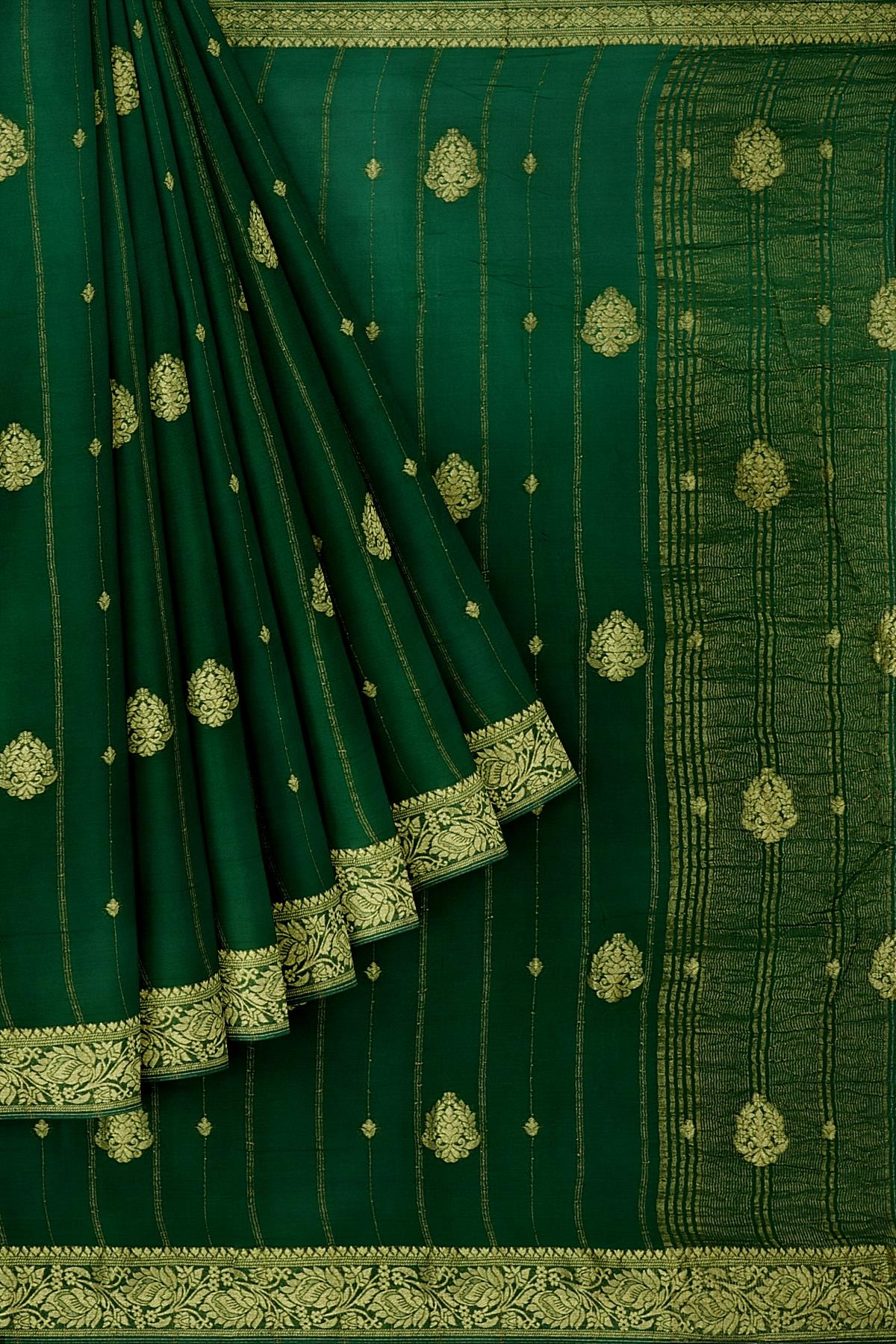 DARK GREEN and GOLD JAAL DUPION SILK Saree with BANARASI