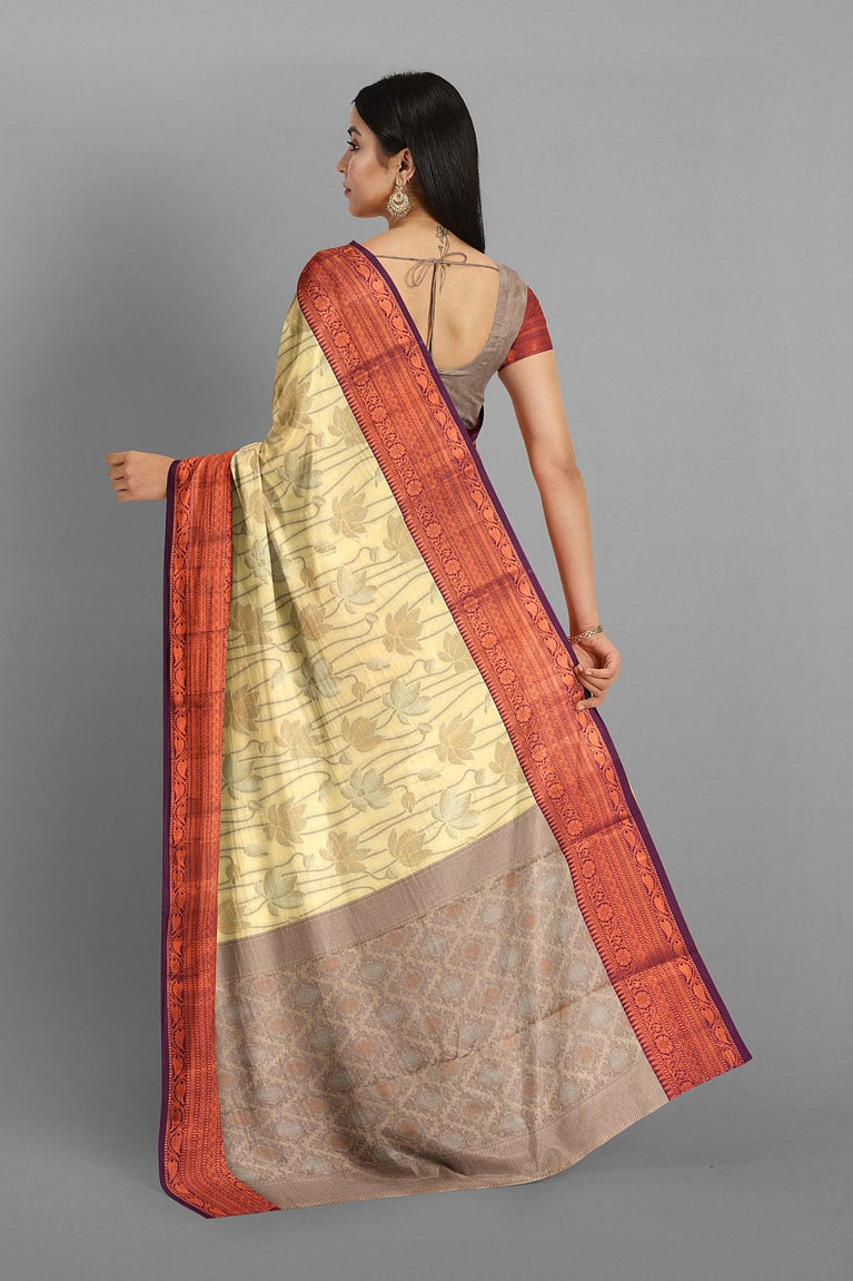 Latest LIGHT OLIVE GREEN FLORAL JAAL CHIFFON Saree with ZARI border. This saree comes with PLAIN WITH BORDER CHIFFON blouse.