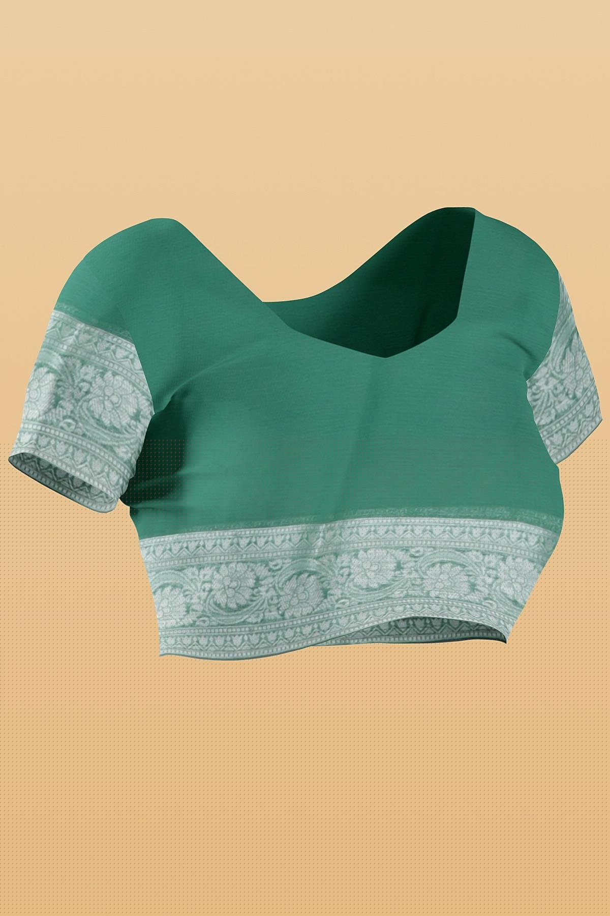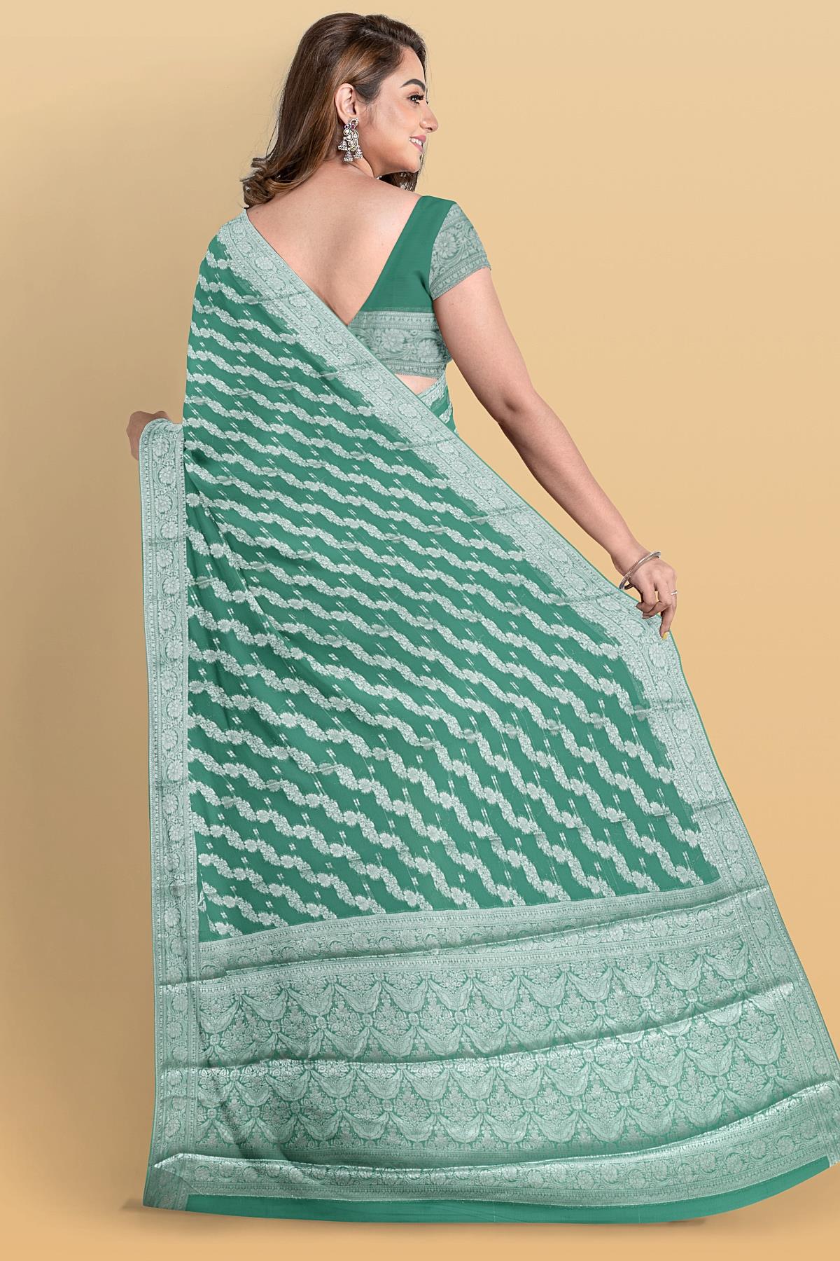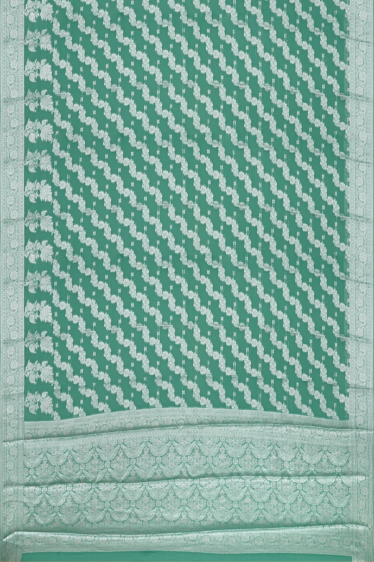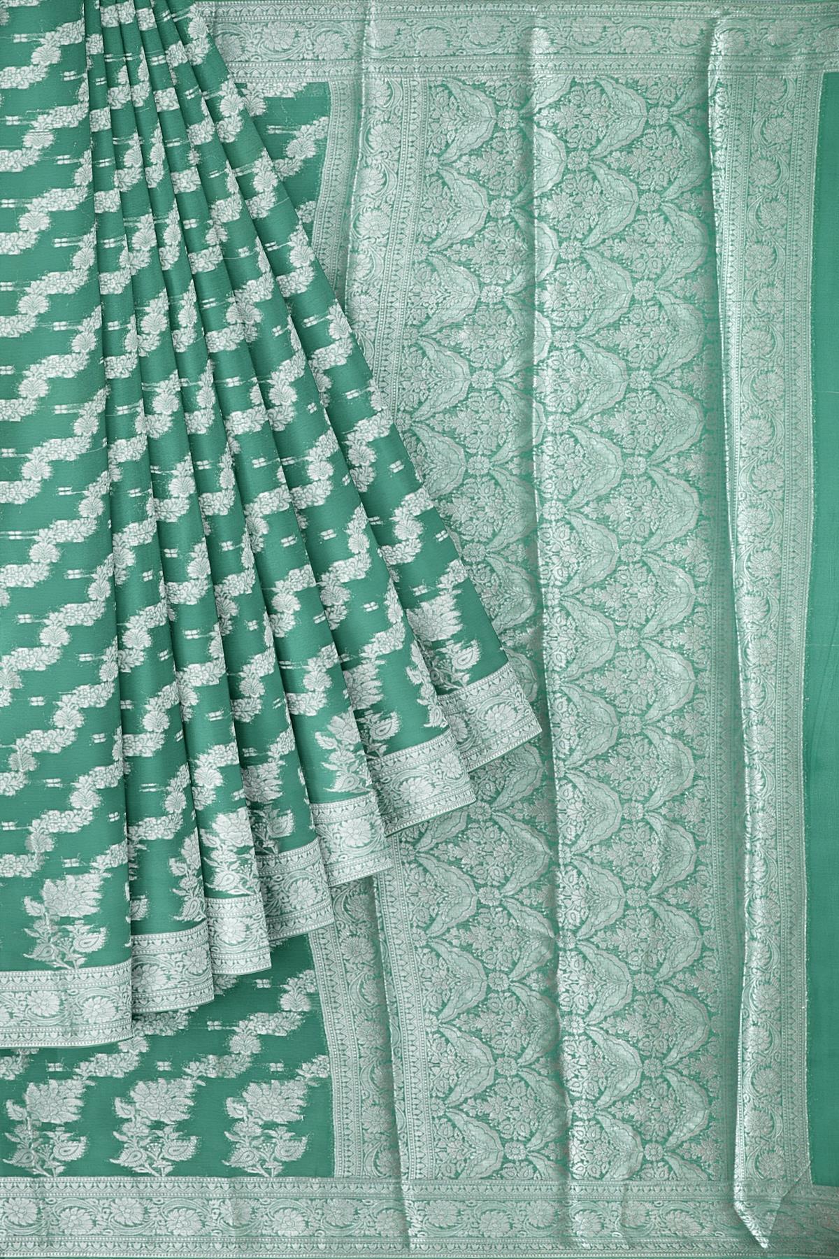 LIGHT OLIVE GREEN and SILVER FLORAL JAAL CHIFFON Saree with BANARASI FANCY