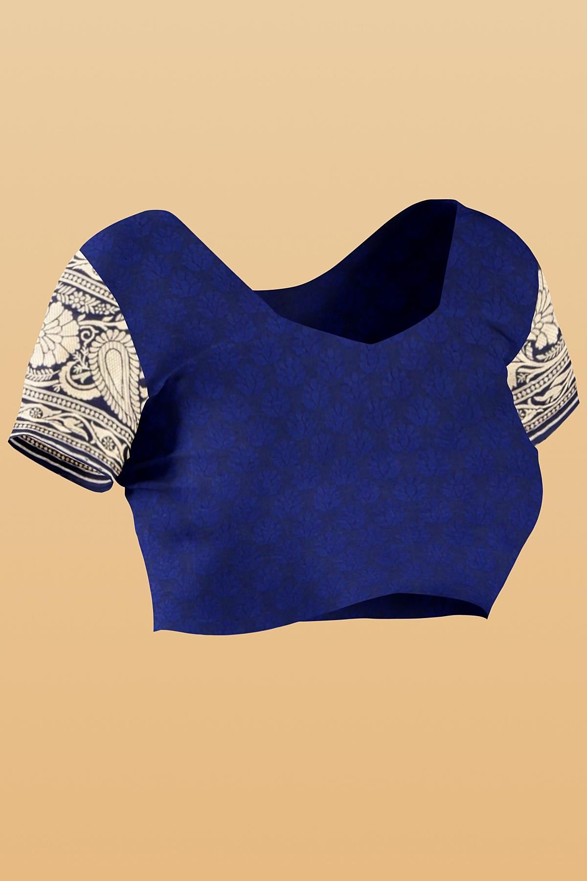 Latest NAVY BLUE FLORALS SILK BLEND Saree with SELF ZARI border. This saree comes with PLAIN WITH BORDER SILK BLEND blouse.