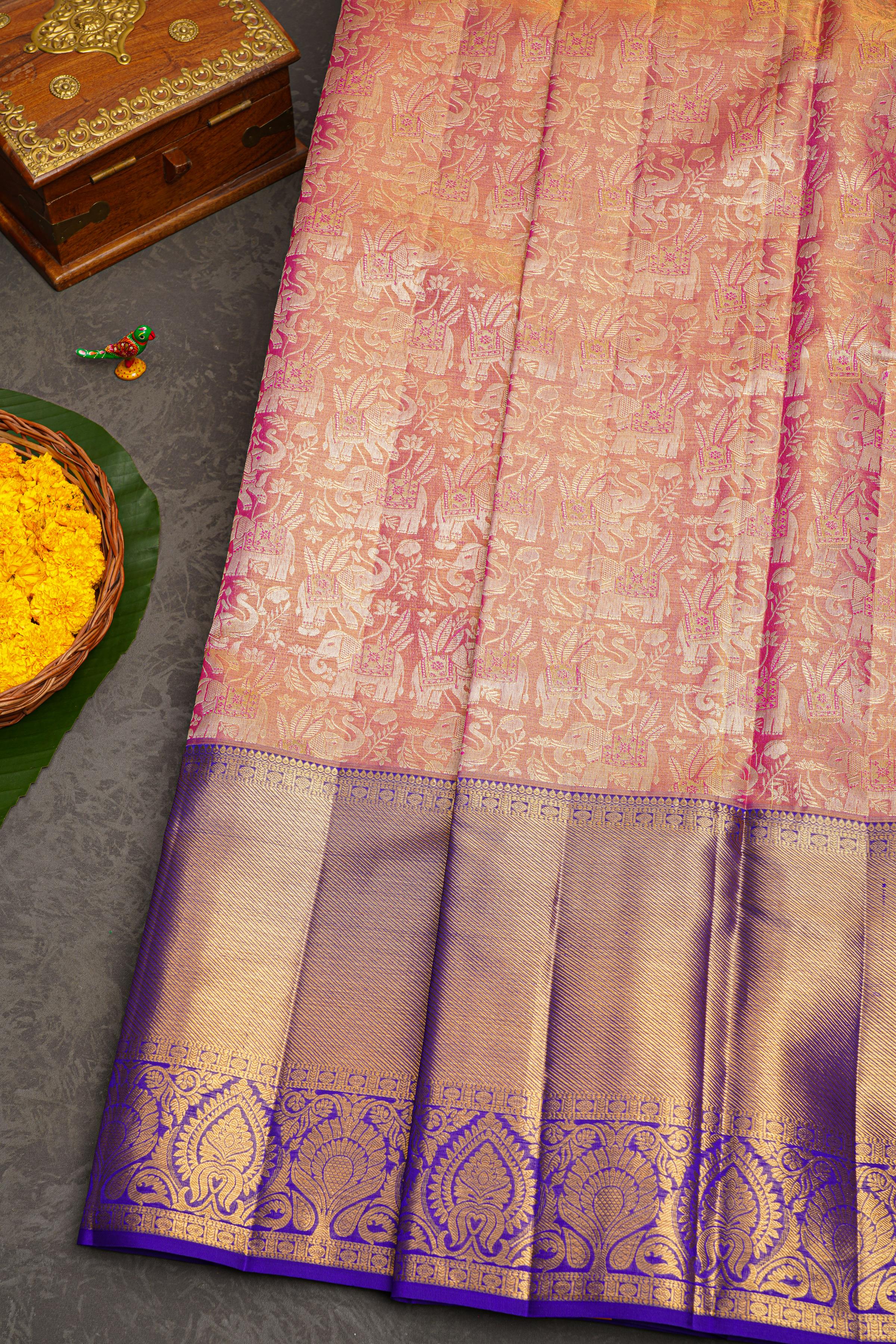 PINK and ROYAL BLUE FLORAL JAAL SILK Saree with KANCHIPURAM