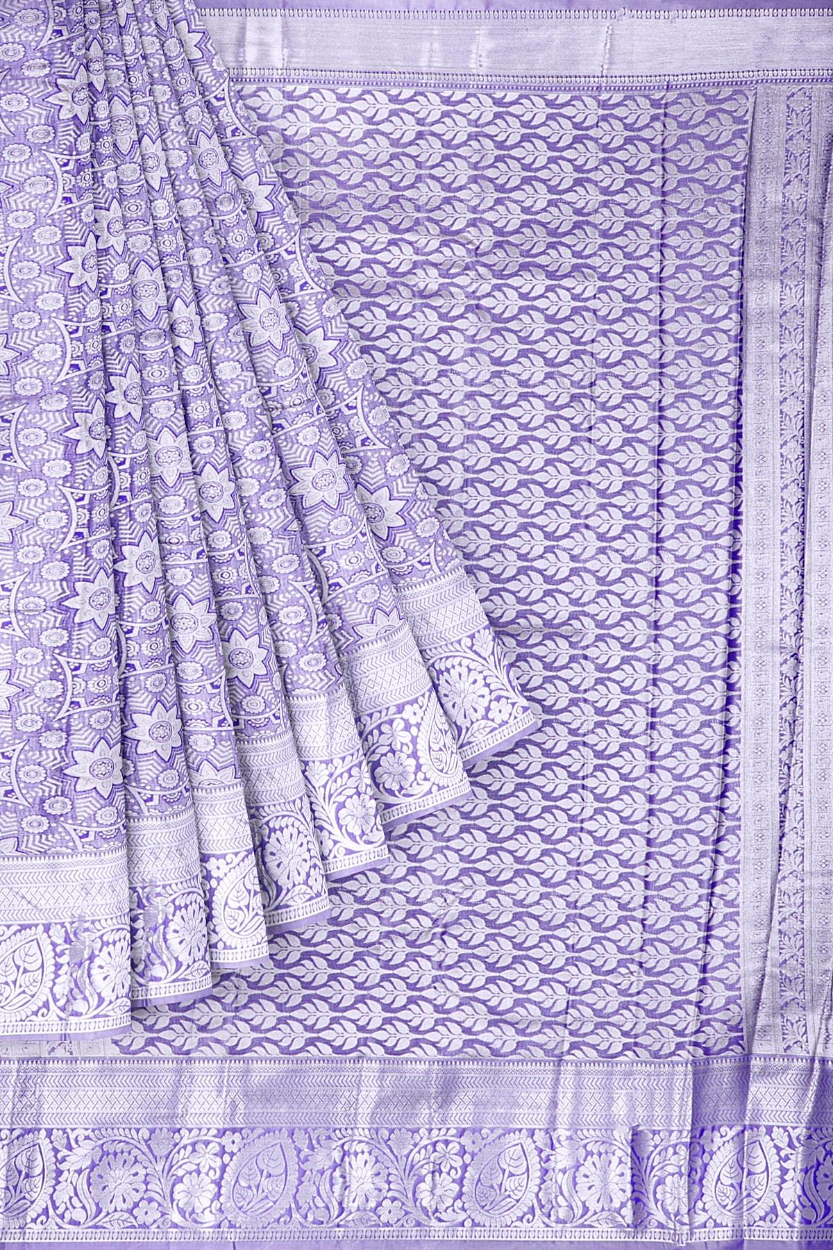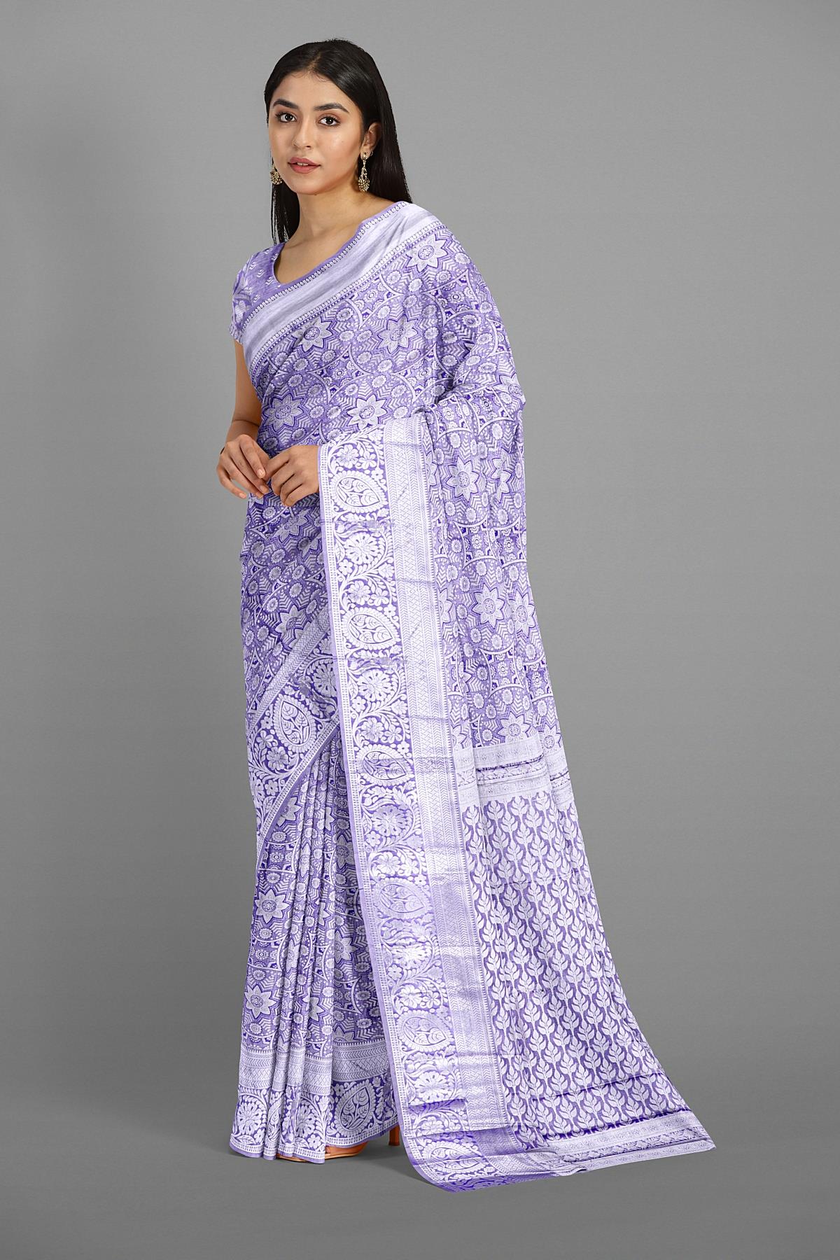 ROYAL BLUE and SILVER FLORALS TISSUE SILK Saree with SEMI PATTU