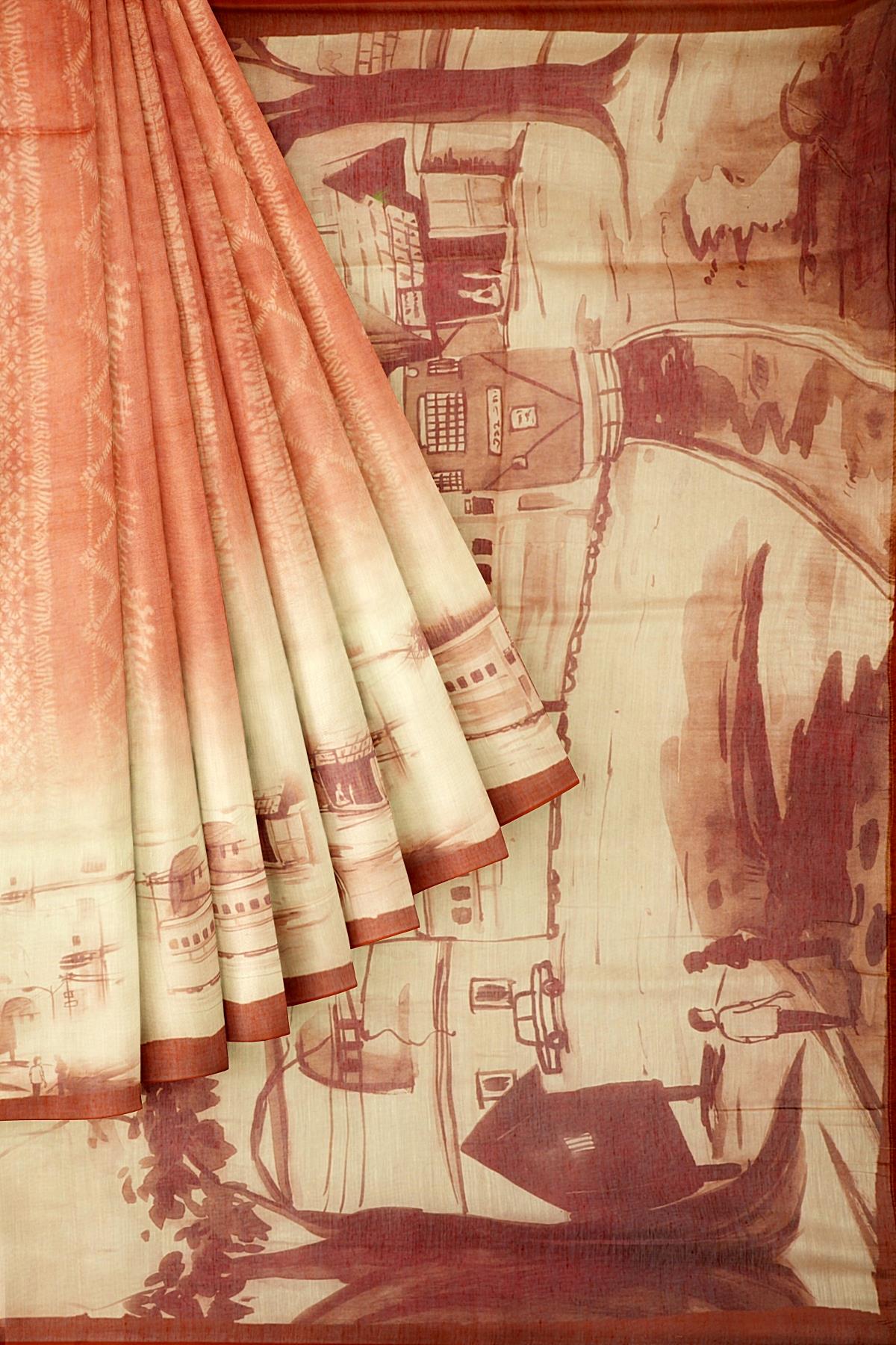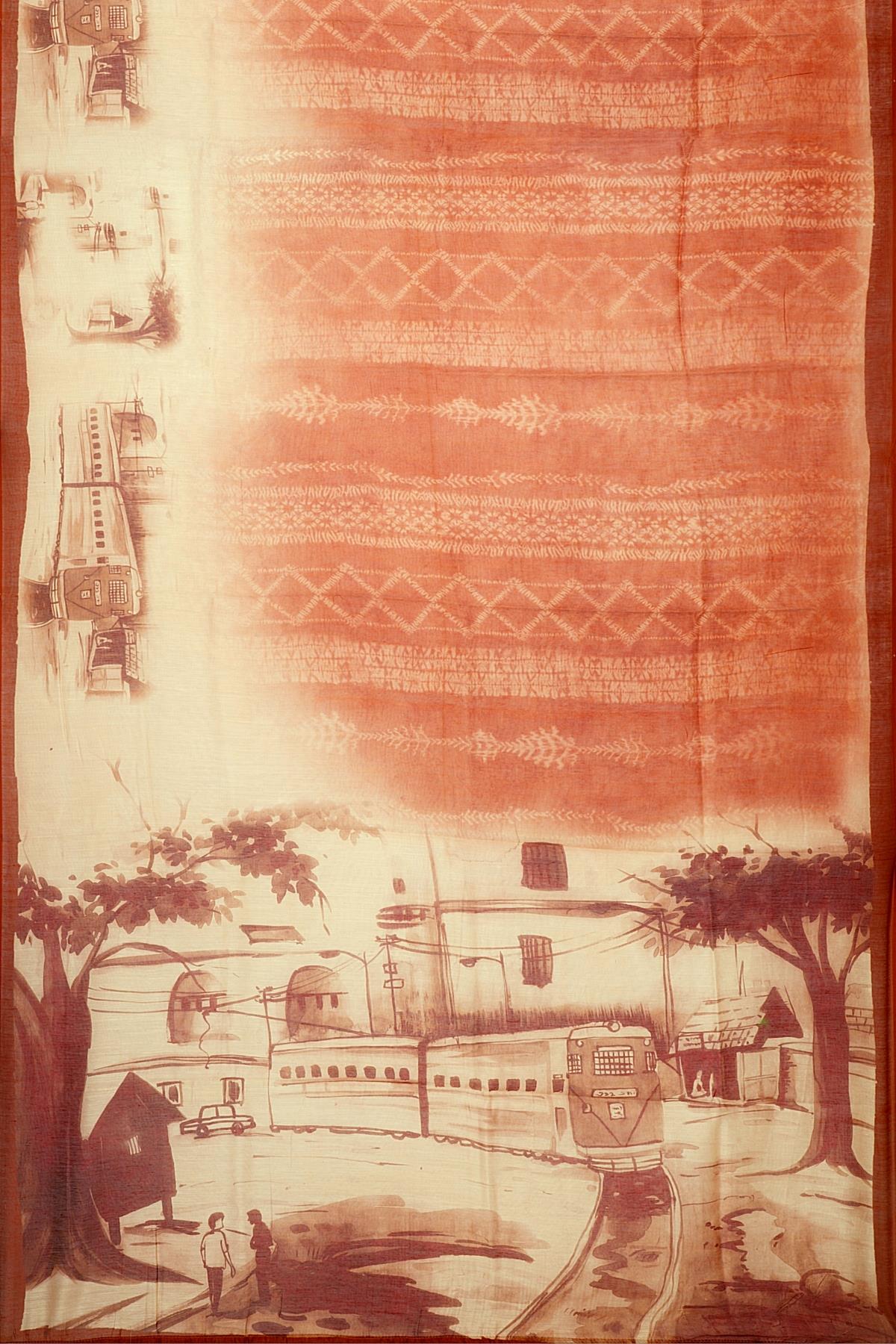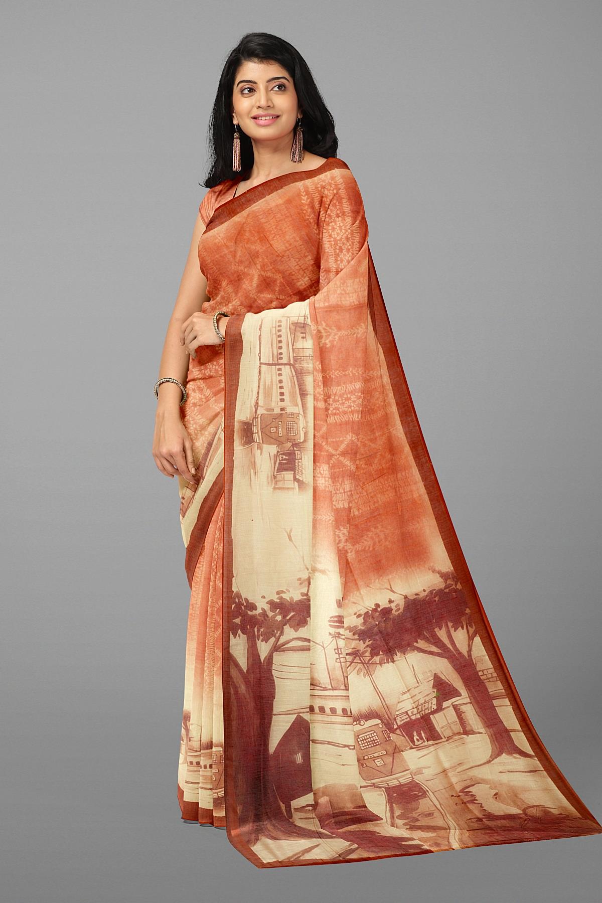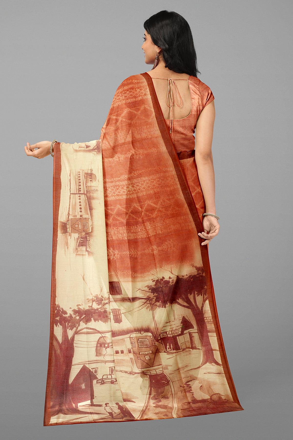 RUST and CREAM DIGITAL PRINT SILK Saree with FANCY