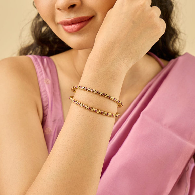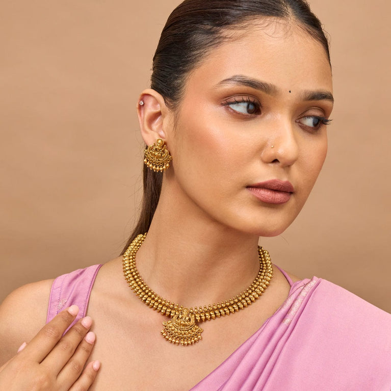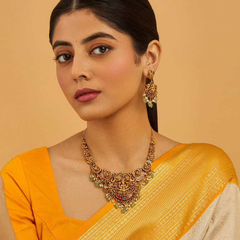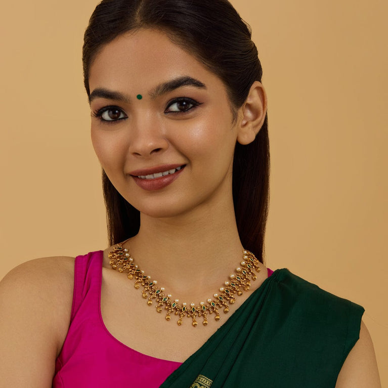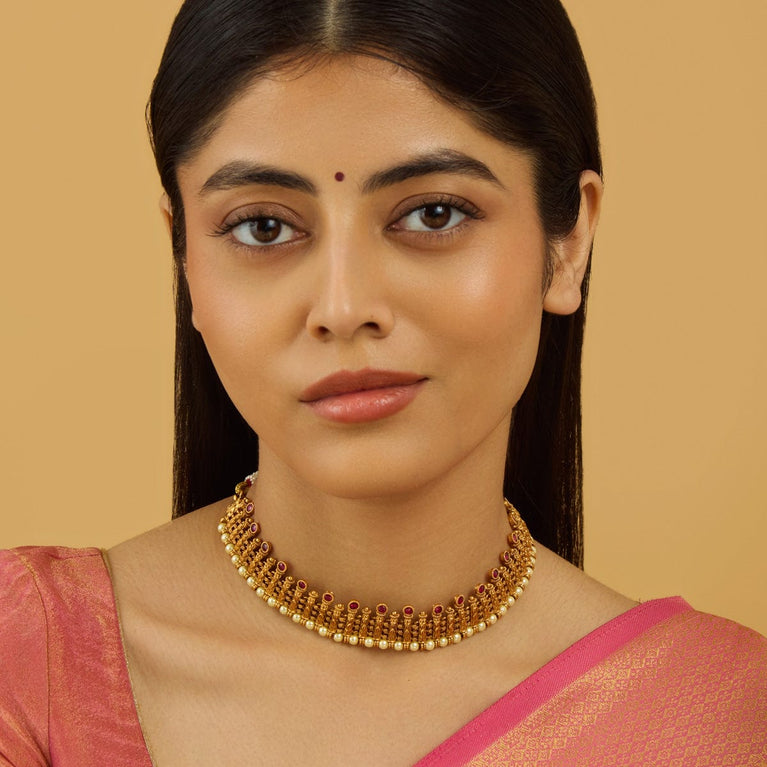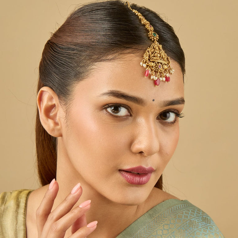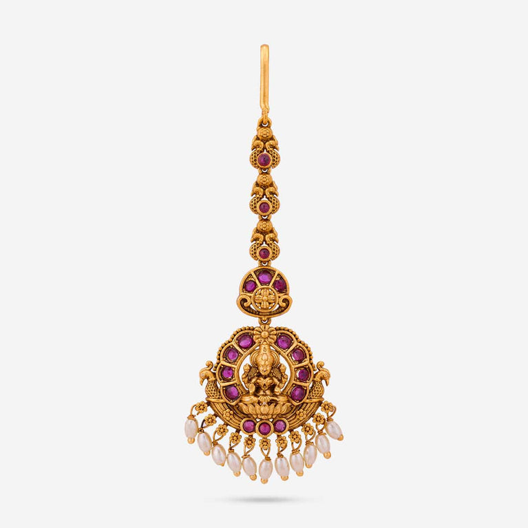 Flower Design Antique EarringMake your outfits look better than ever with these earrings. The antique earrings are designed with ruby-coloured stones set against a gold-tone polish, creating a timeless appeal. The detailing complements the vivid hues of the stones, making them ideal for festive occasions or traditional attire. Pair these earrings with your festive kurtas for a sweet, feminine look.