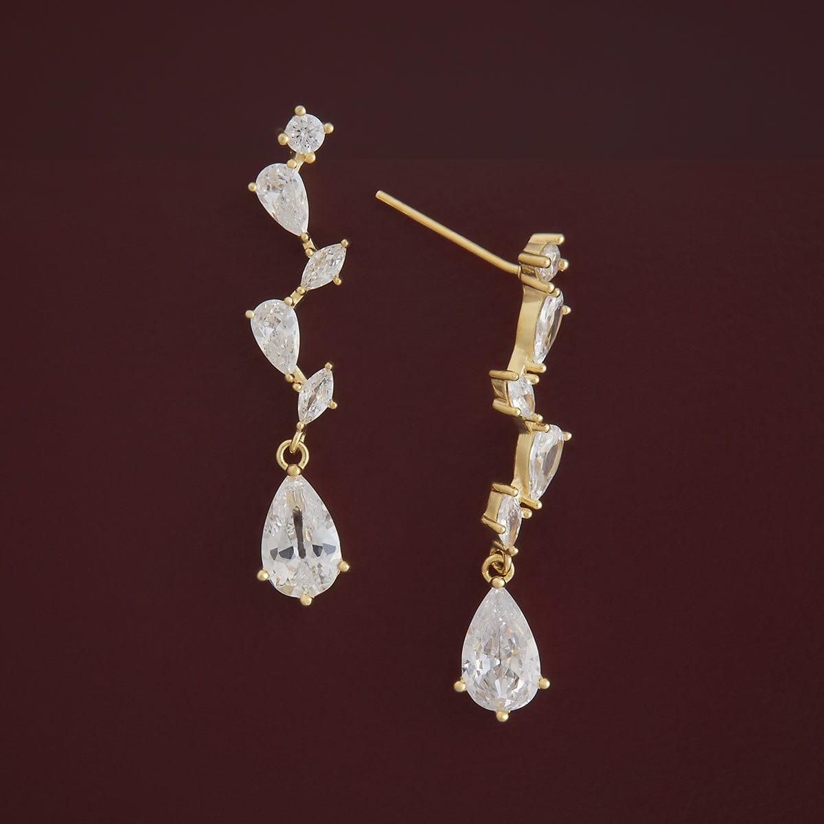 Flaunt shiny zircon stones with these 92.5 silver earrings. Style the white-stone studded earrings with a ruffled-sleeve dress, headband and strappy wedges. The hanging earrings feature a push-back closure for added safety and convenience. They’re available in multiple polish options including gold, rhodium and rose gold.