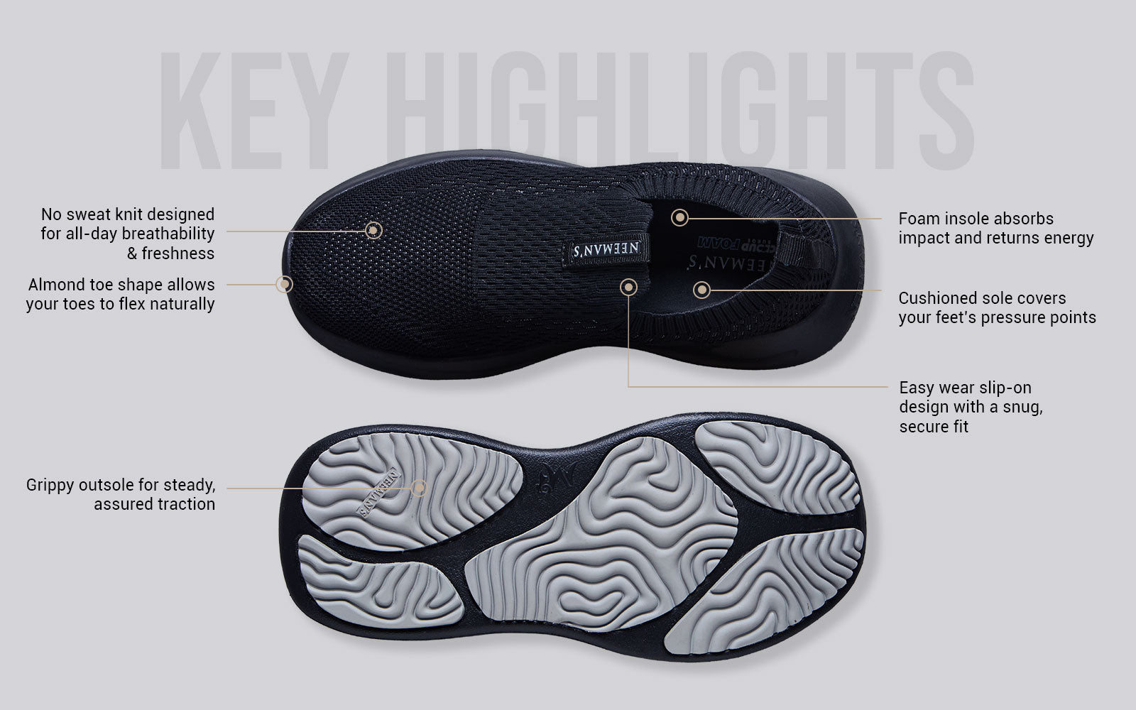 Finally! A gym partner that never bails. The Knit Trainers’ pressure-absorbing cushioned sole power you through every set, while the stretchy and breathable knit keeps your feet snug & fresh. Let these take care of the comfort, from warm-up to cooldown, while you focus on form and make every workout worth a little more.