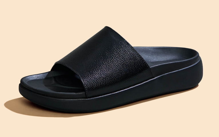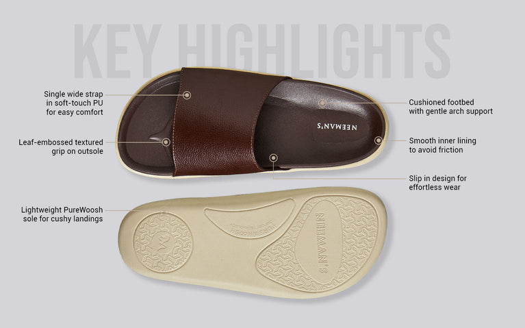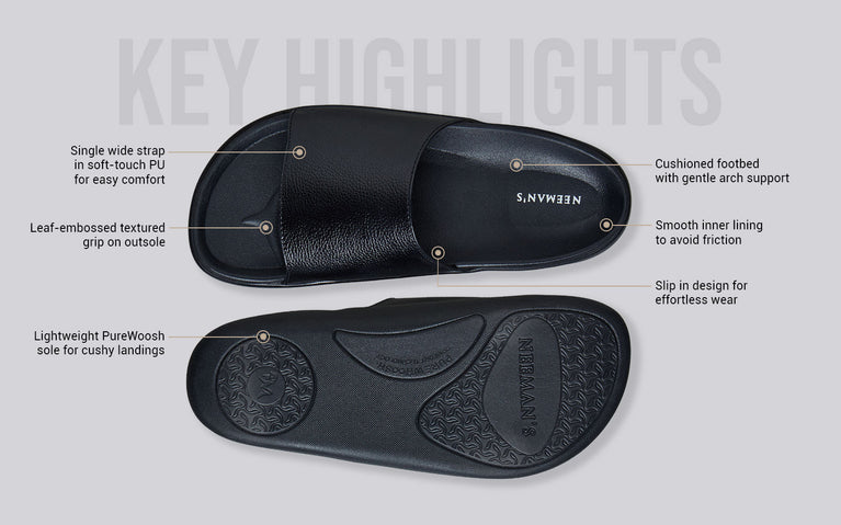 Say hello to a slide that gets it all right—style, support, and ease. PureWoosh Flow is Neeman’s spin on the timeless double-buckle silhouette, now reimagined for modern-day comfort seekers. With a sleek matte finish and soft contoured footbed, it’s built to slide into any outfit and any mood. Rain-ready, ridiculously comfy, and made to move with you, this one's a true multitasker. From weekday errands to weekend lounging, it brings just the right amount of polish to your off-duty days.