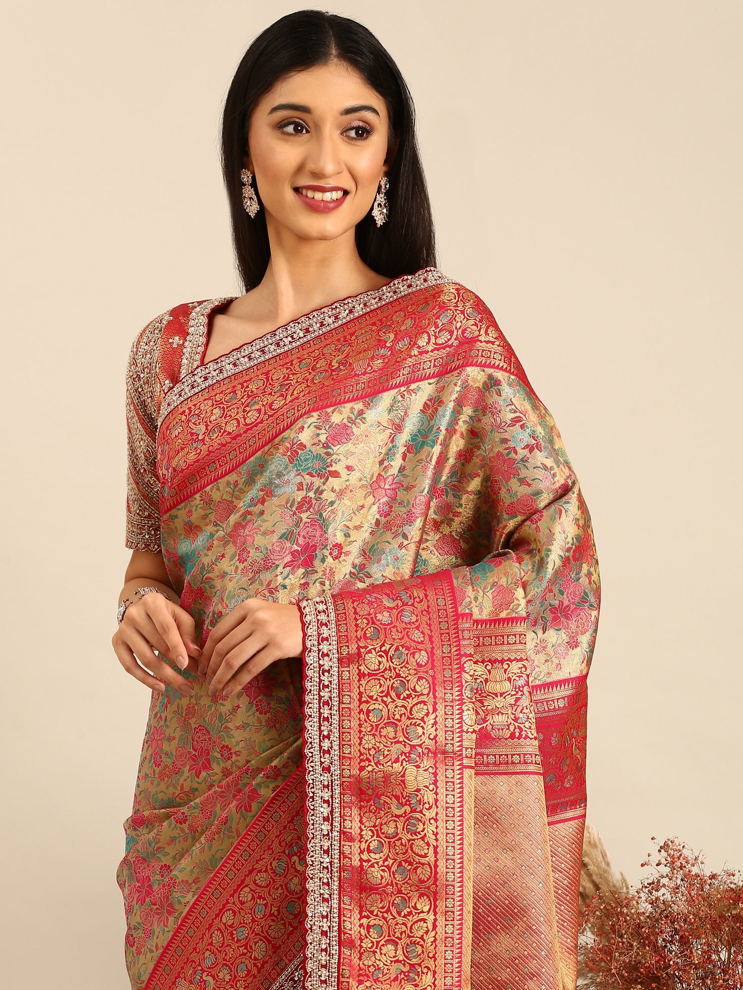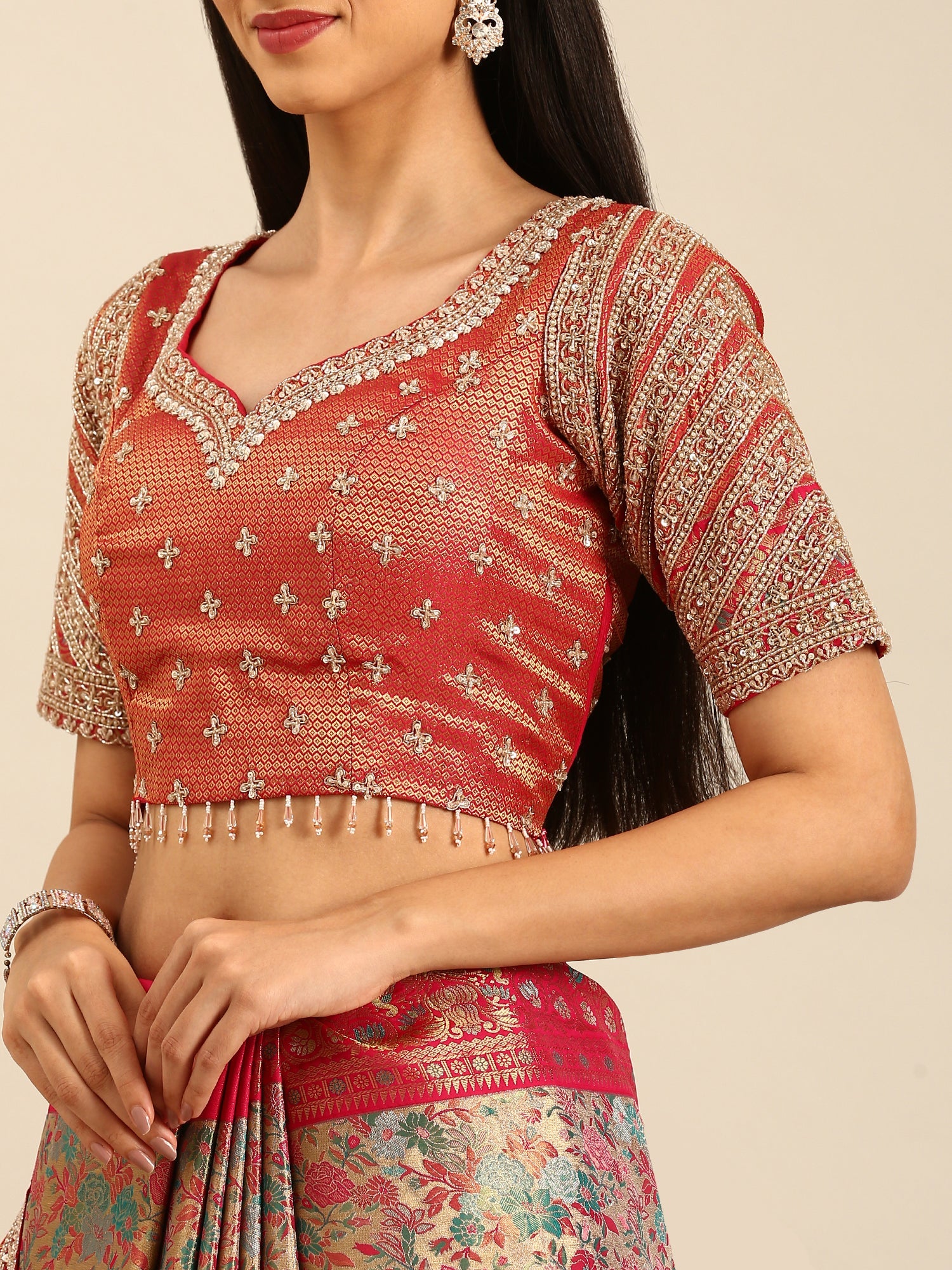 Banarsi silk saree with meenakari jaal , border & hand embroidery on border and readymade heavy blouse