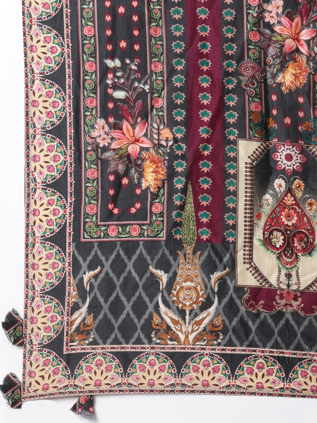Elevate your ethnic wardrobe with this Black Georgette Anarkali Three Piece Set. Crafted from flowing georgette fabric, it offers a graceful silhouette and comfortable fit. The set combines traditional elegance with modern design, perfect for festive occasions or special gatherings. Its timeless black hue adds a touch of sophistication, ensuring you stand out with effortless charm.