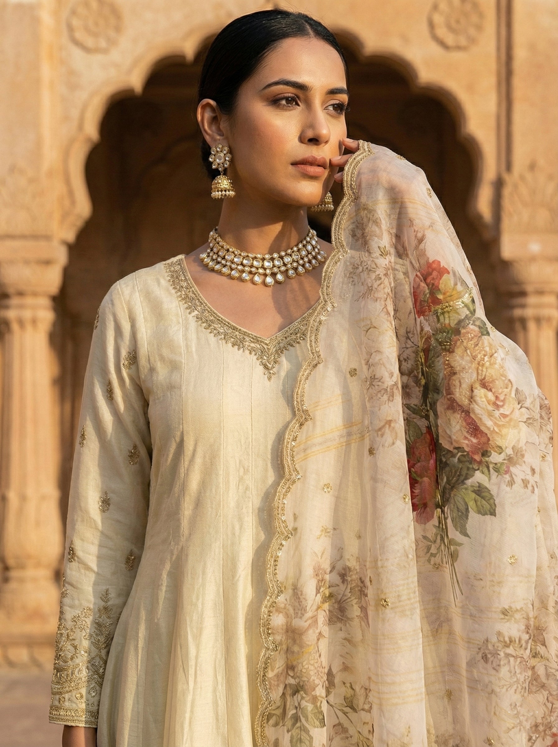 Elevate your wardrobe with this exquisite Cream Silk Digital Printed Three Piece Set, a perfect blend of elegance and versatility. Crafted from premium silk, this ensemble features stunning digital prints that showcase intricate artistry and contemporary design. The three-piece composition offers endless styling possibilities—wear each piece individually or together for a coordinated, sophisticated look. Ideal for festive occasions, celebrations, or elevated everyday wear, this set combines comfort with timeless grace. The luxurious silk fabric drapes beautifully, enhancing your natural silhouette while providing a soft, breathable feel. Make a refined statement with this must-have addition to your collection.