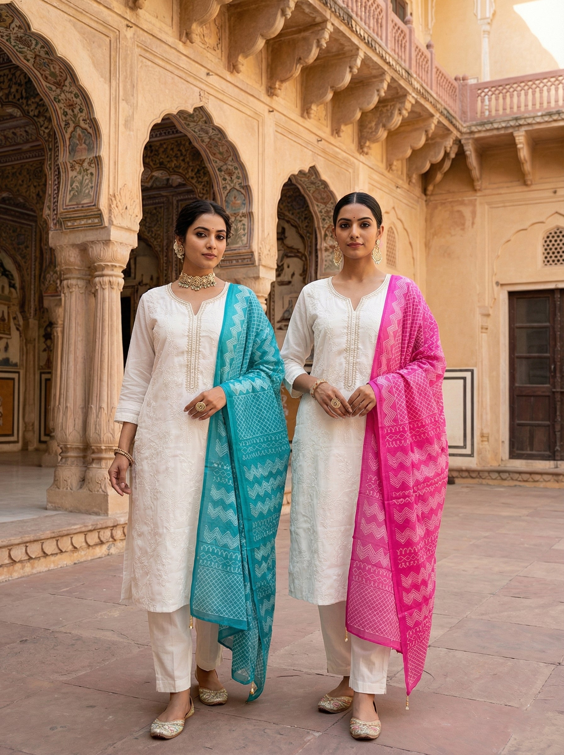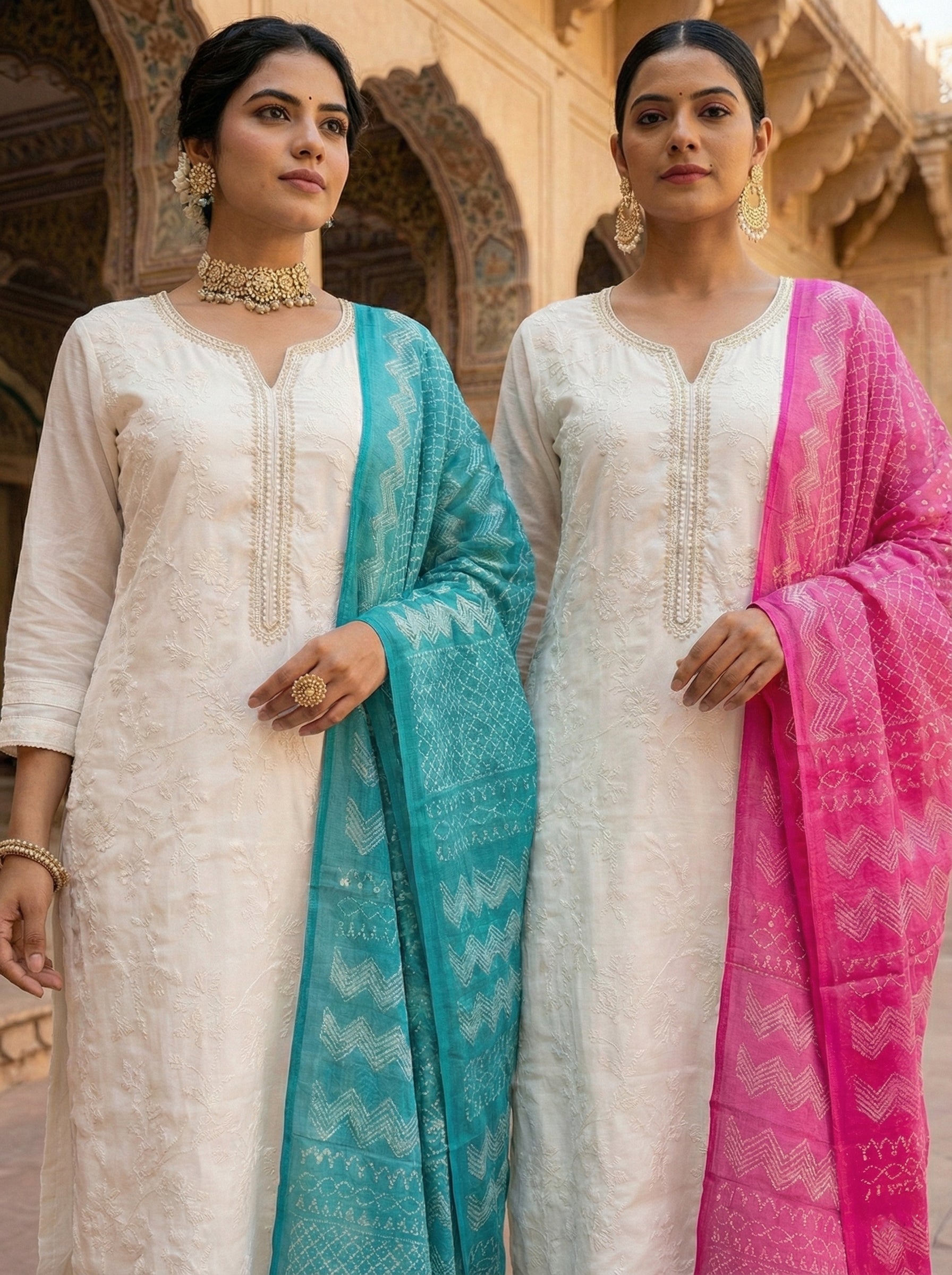 Elevate your ethnic wardrobe with this exquisite cream silk three-piece ensemble, meticulously crafted with intricate hand embroidery. Each piece showcases traditional artistry combined with luxurious silk fabric, offering unparalleled comfort and sophistication. Perfect for weddings, festivals, and special occasions, this set brings timeless elegance to your collection. The delicate embroidered details catch light beautifully, ensuring you stand out with grace and refinement. Invest in quality craftsmanship that celebrates cultural heritage while delivering contemporary style.