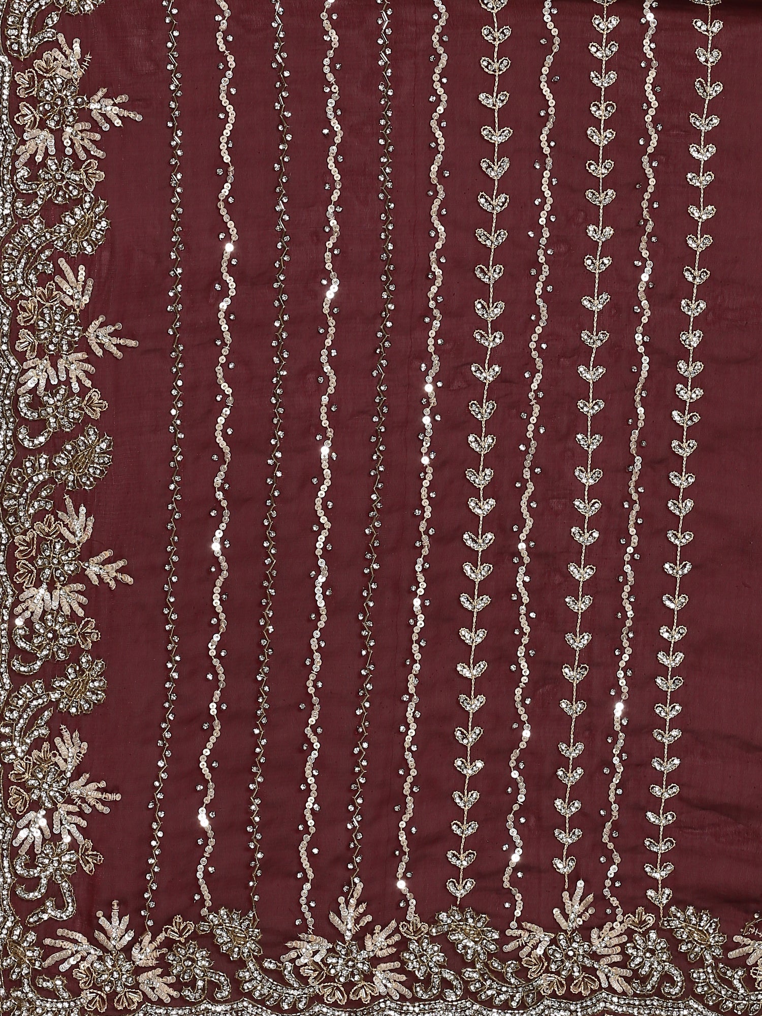 Maroon Swarovski & Cut Dana Hand Embroidered Saree